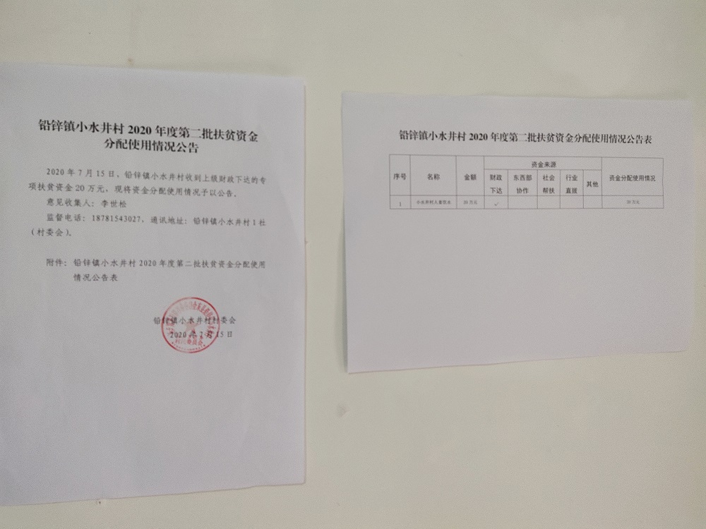 小水井村关于2020年度扶贫资金项目计划完成情况的公告
