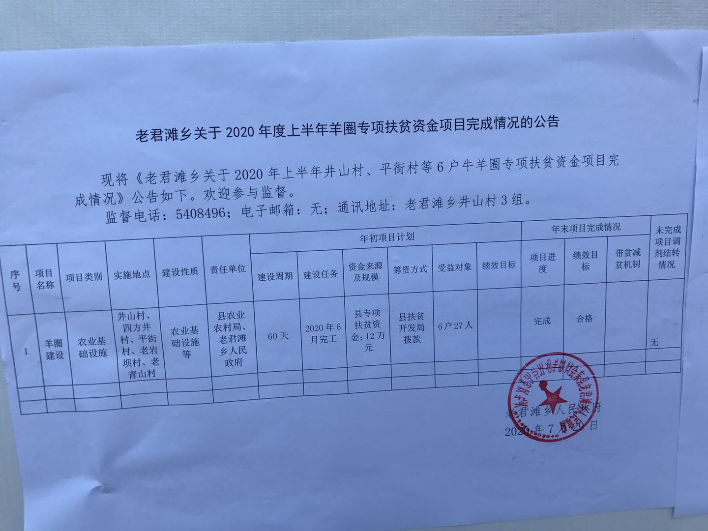 2020年上半年羊圈扶贫资金项目