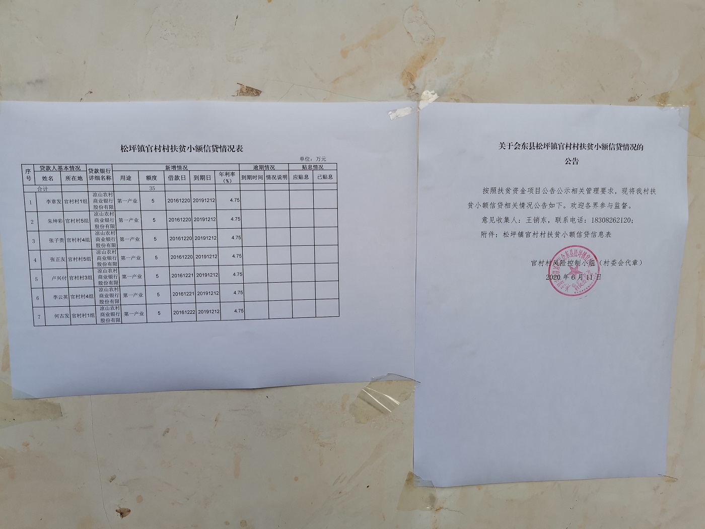 松坪镇官村村关于扶贫小额信贷情况的公告