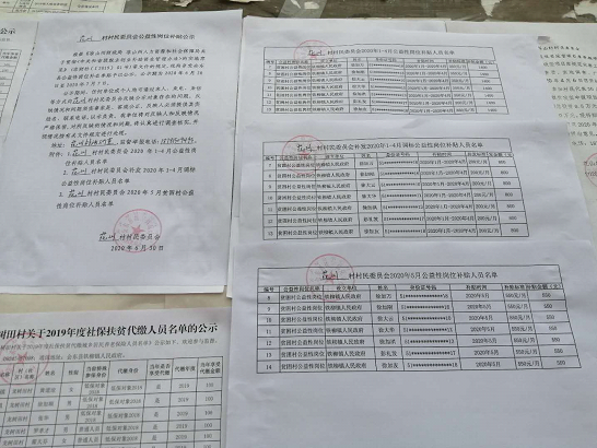 花山村2020年1-5月公益性岗位补贴公示