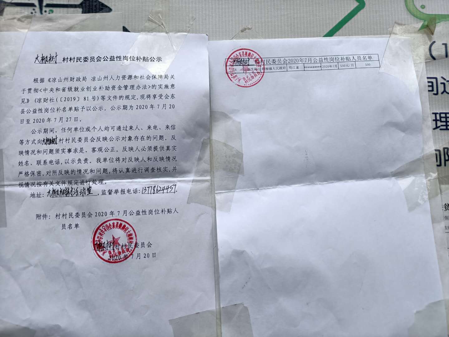 大柳树村2020年7月公益性岗位补贴