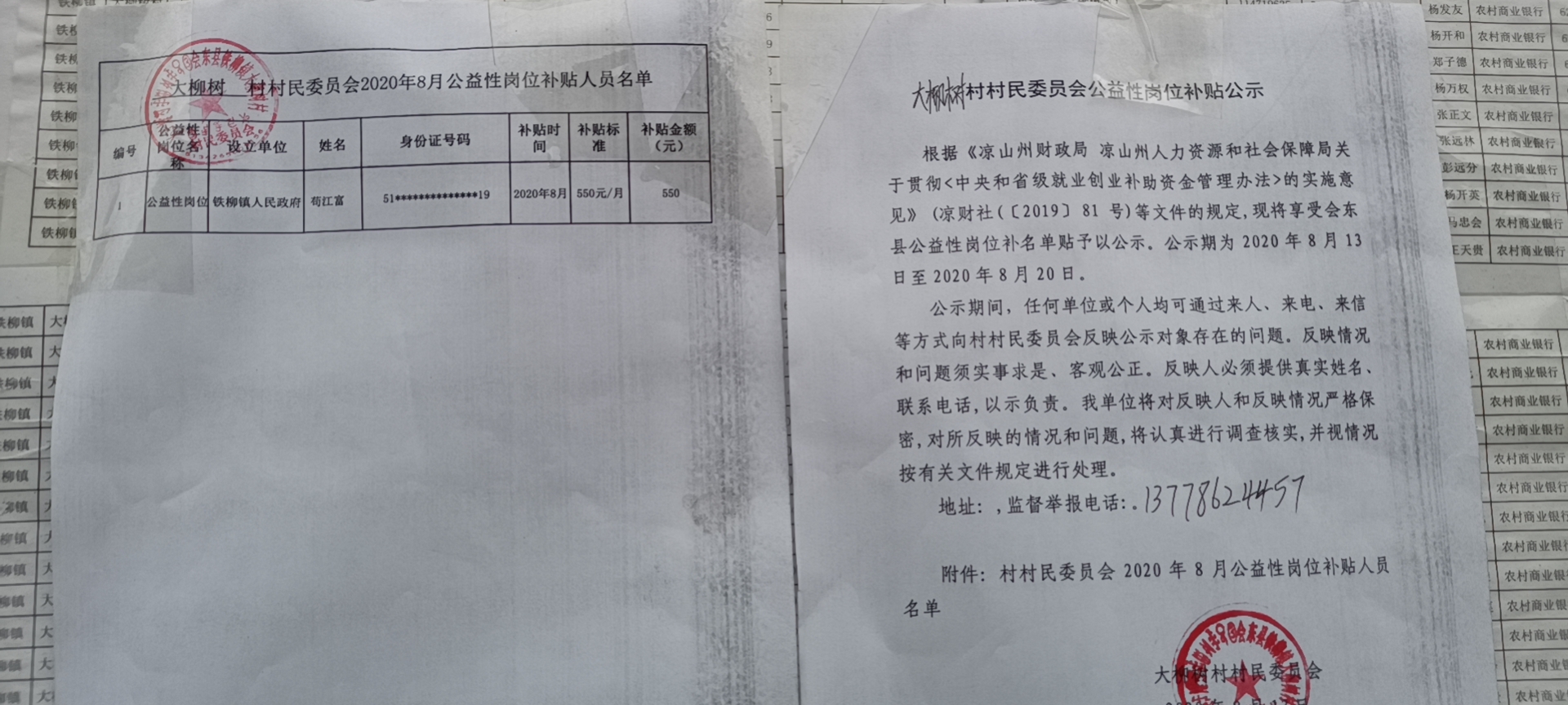 大柳树2020年8月公益性岗位补贴