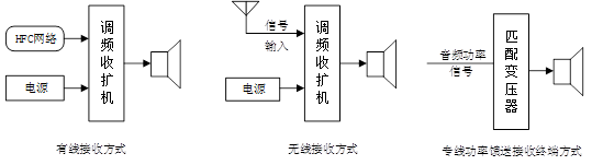 应急广播村村响接收终端是指将调制信号还原为声音的设施。下图所示3种主要的终端接收方式