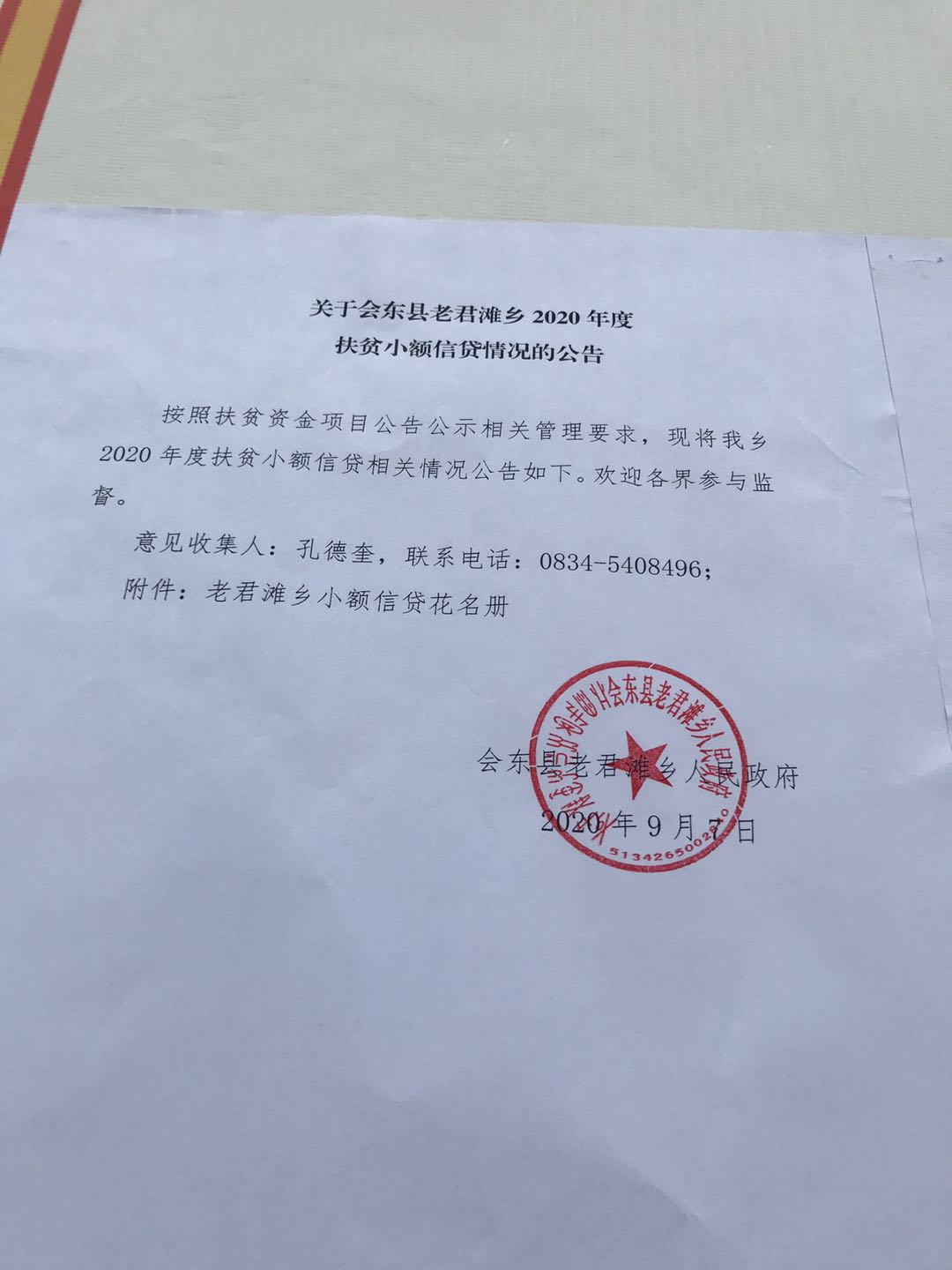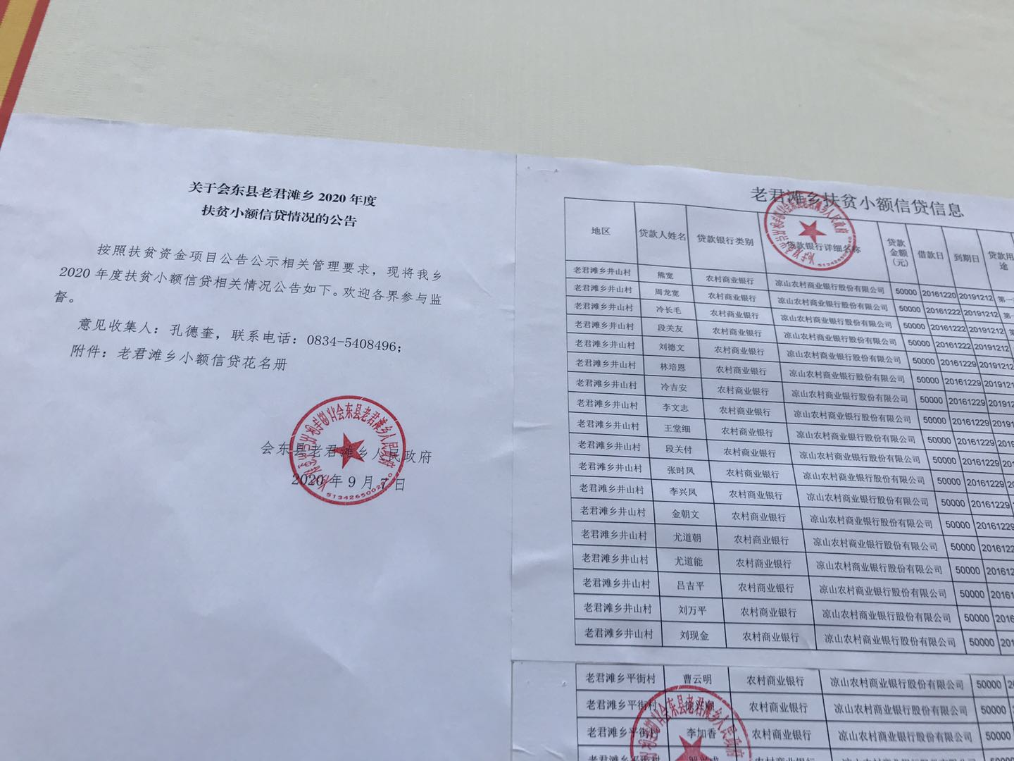 老君滩乡2020 年扶贫小额信贷公示