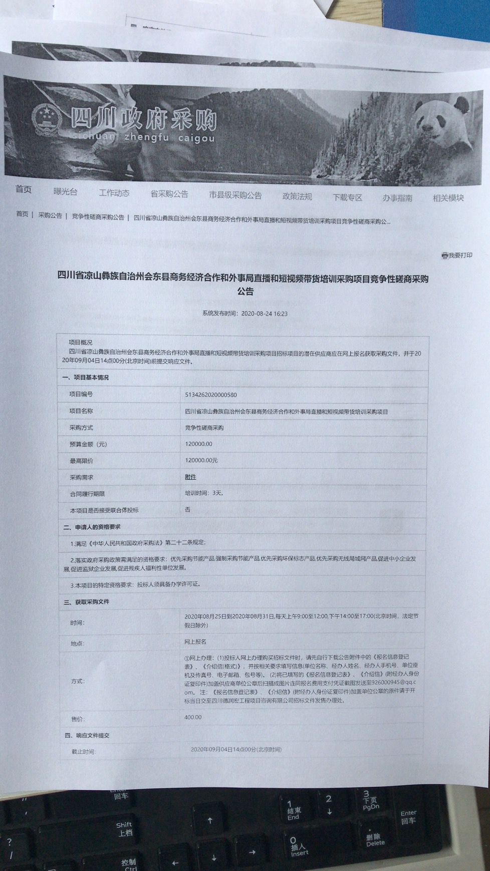 会东县商务经济合作和外事局直播和短视频带货培训采购项目竞争性磋商采购公告