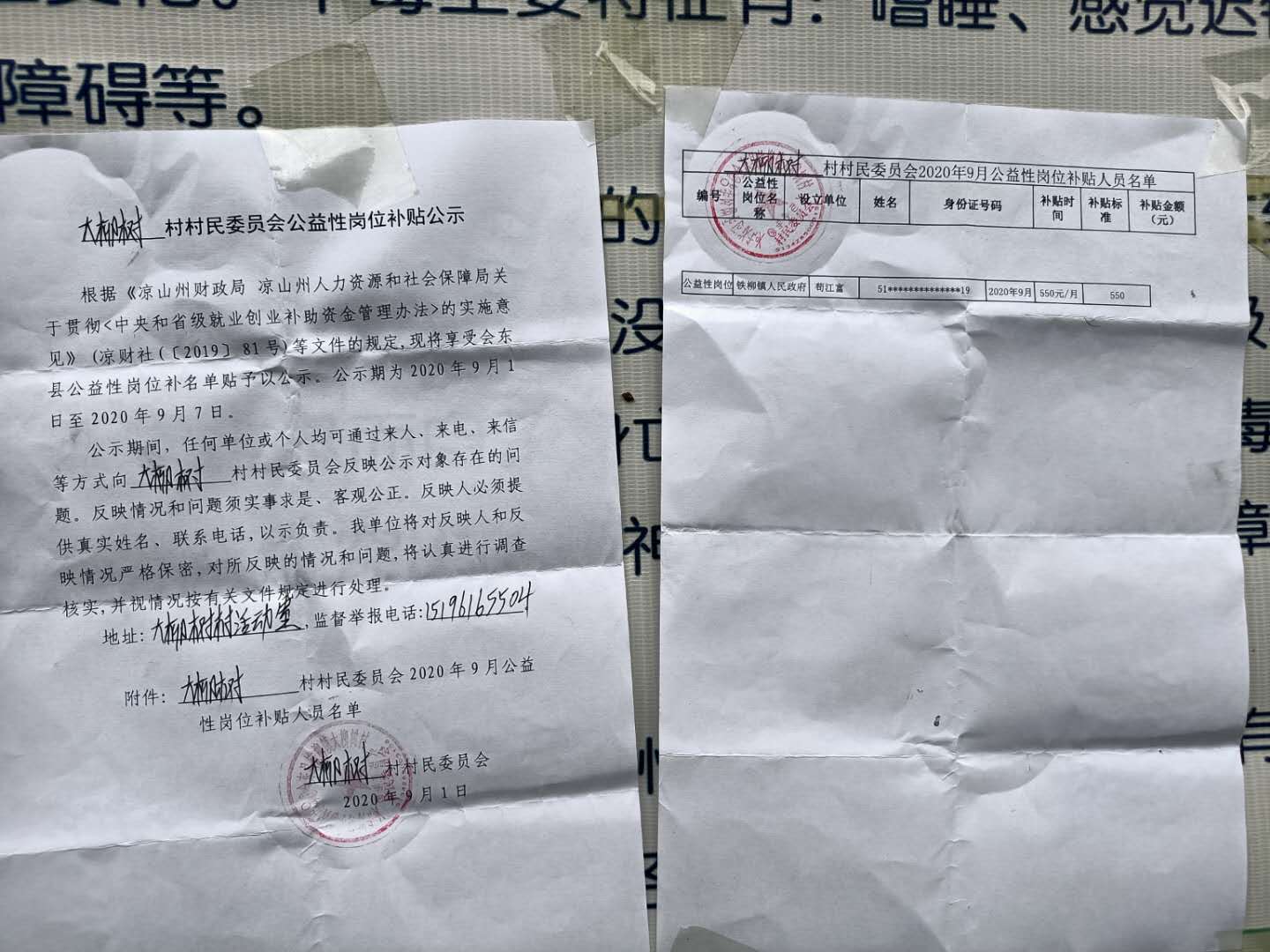 雄堡村(原熊普村)2020年9月公益性岗位补贴