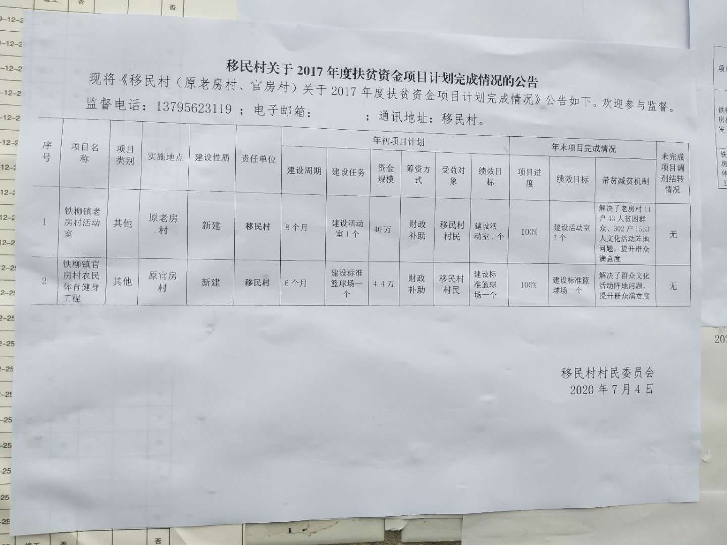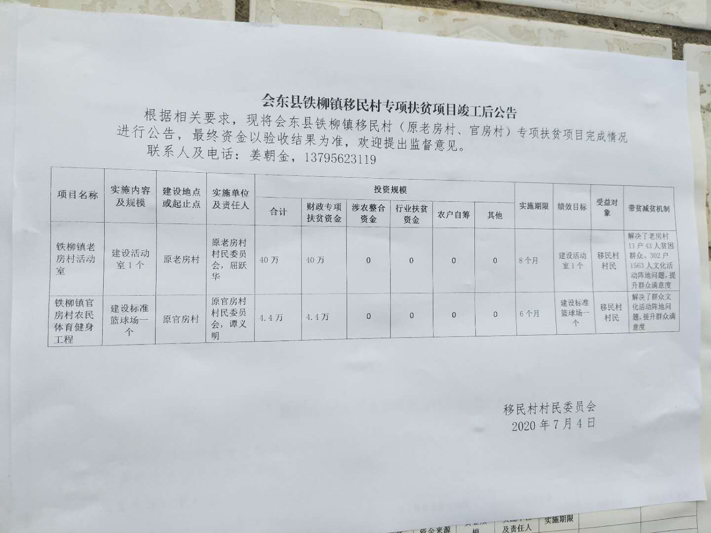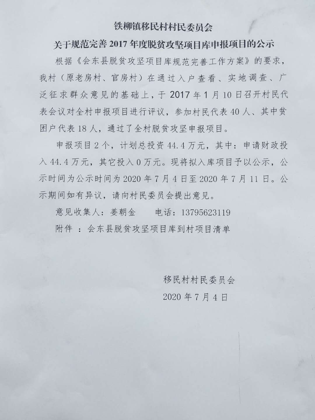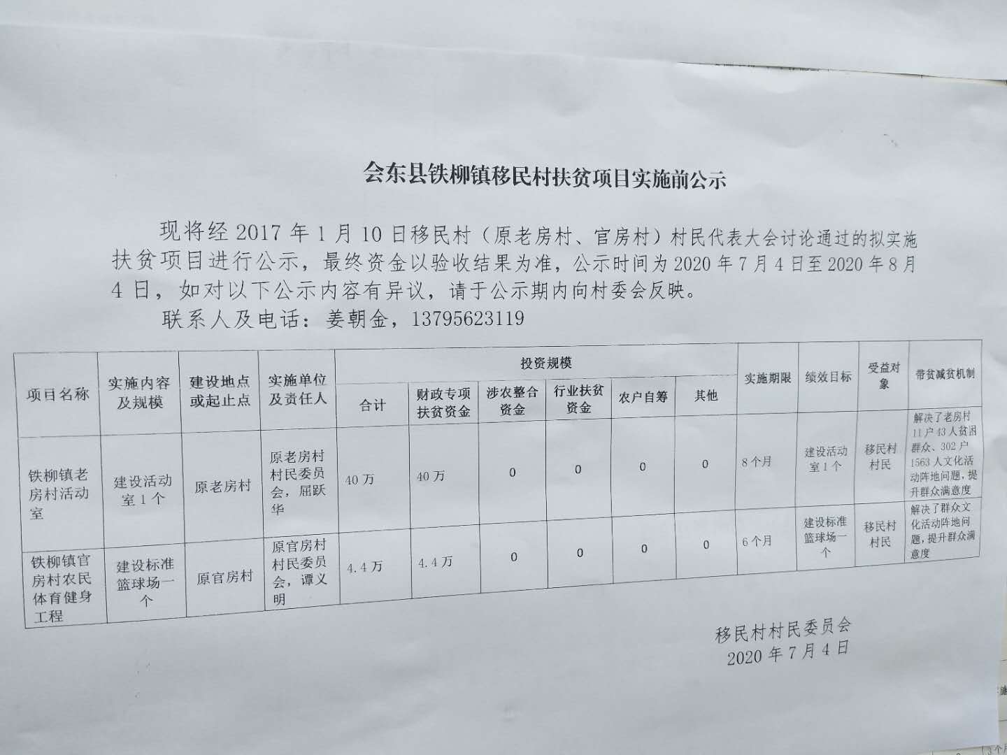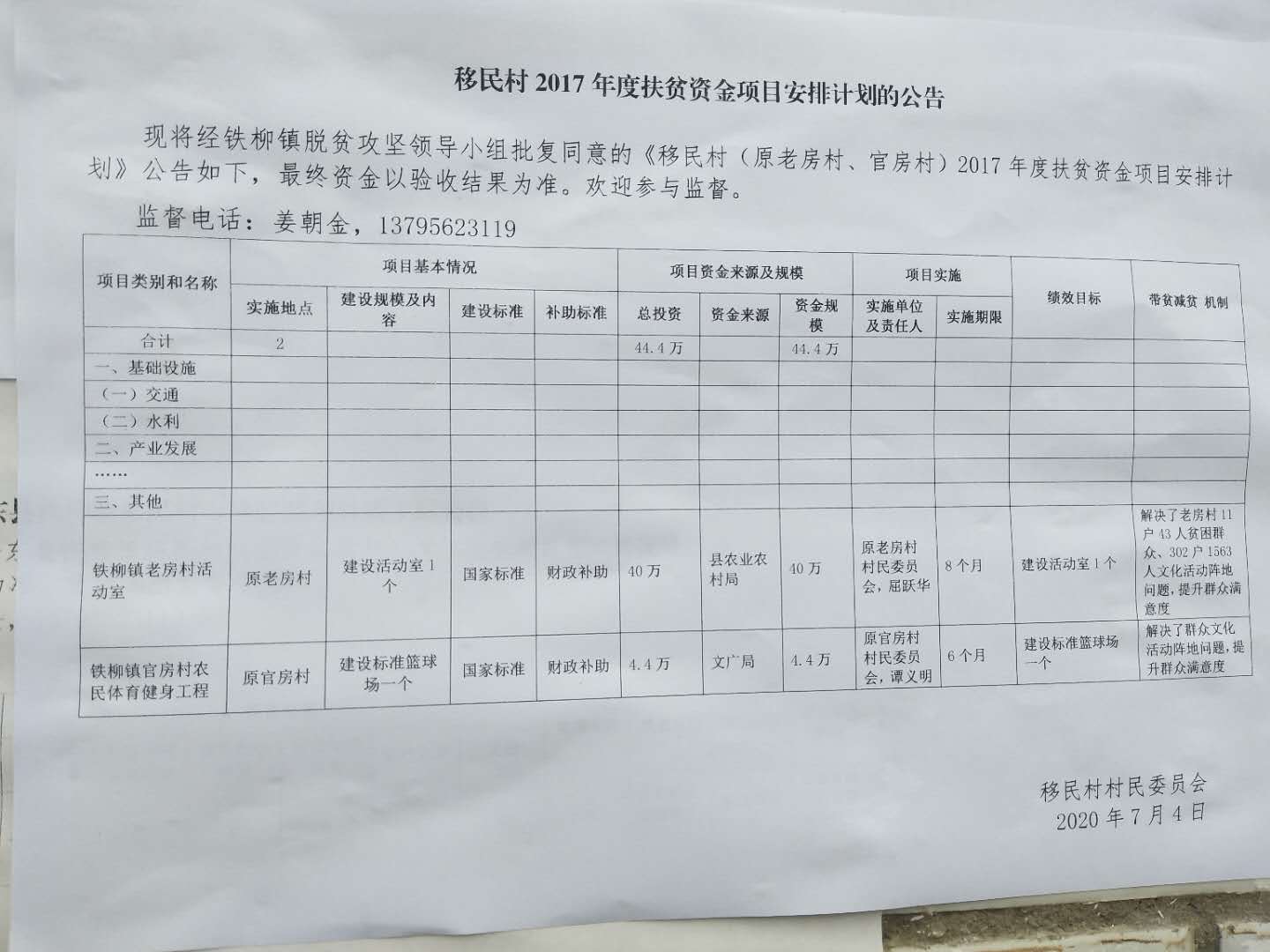 移民村(原官房村、老房村)2017年扶贫项目公示