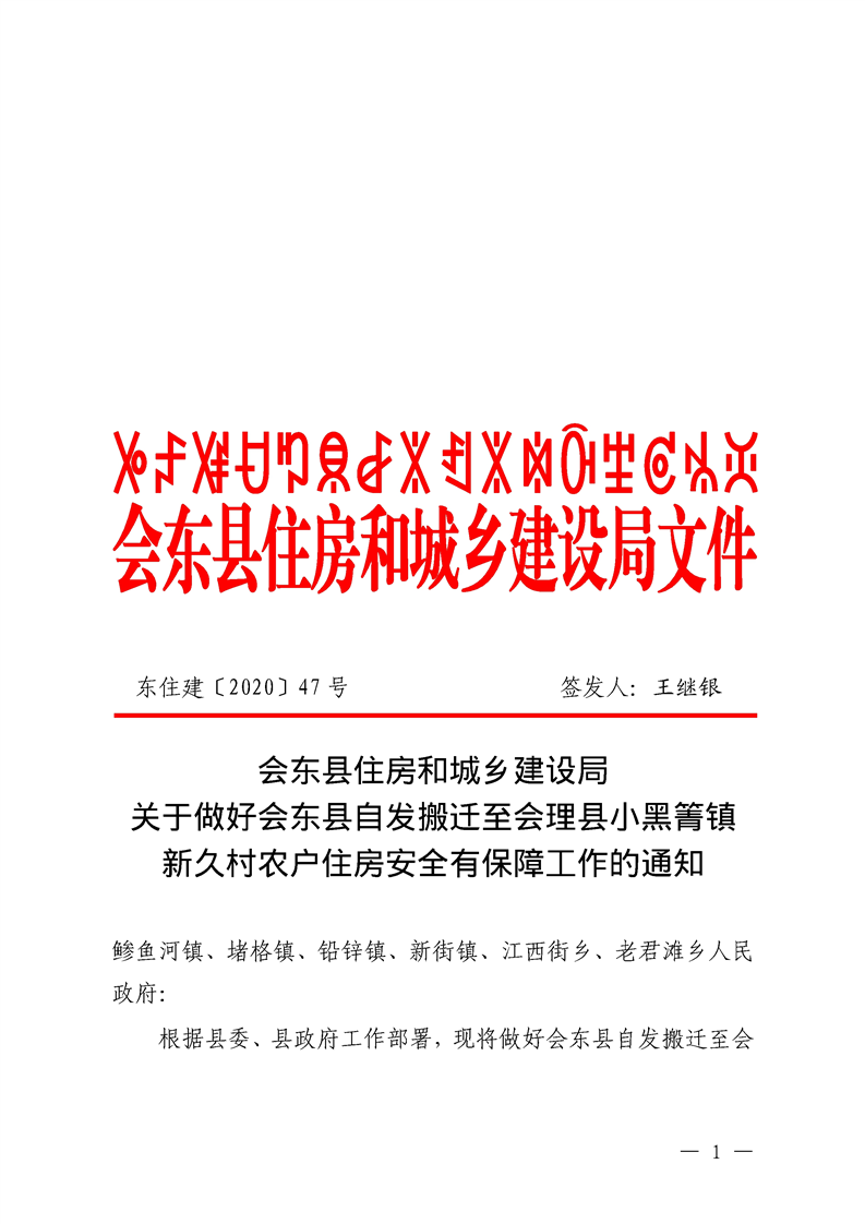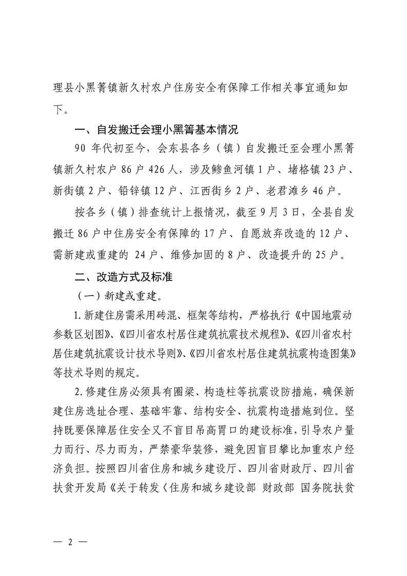 关于做好会东县自发搬迁至会理县小黑箐镇新久村农户住房安全有保障工作的通知