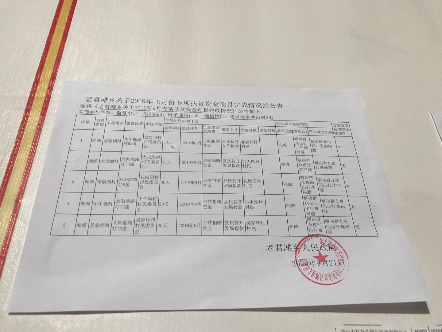 老君滩乡2019年相关行政村太阳能路灯项目完工公示