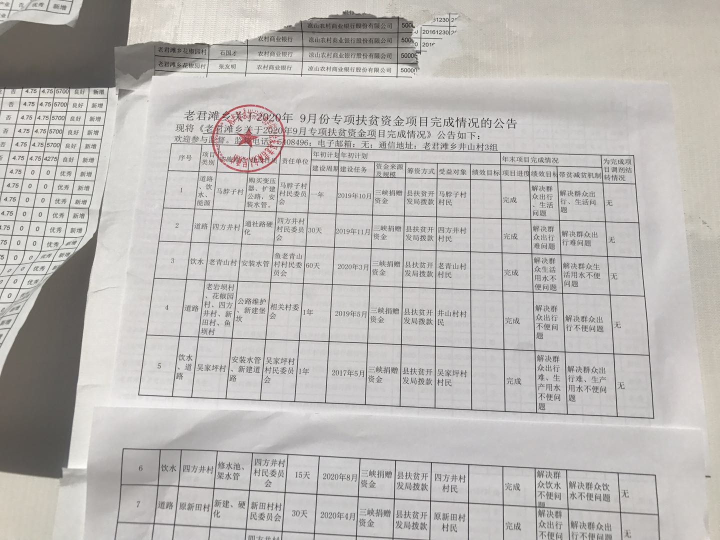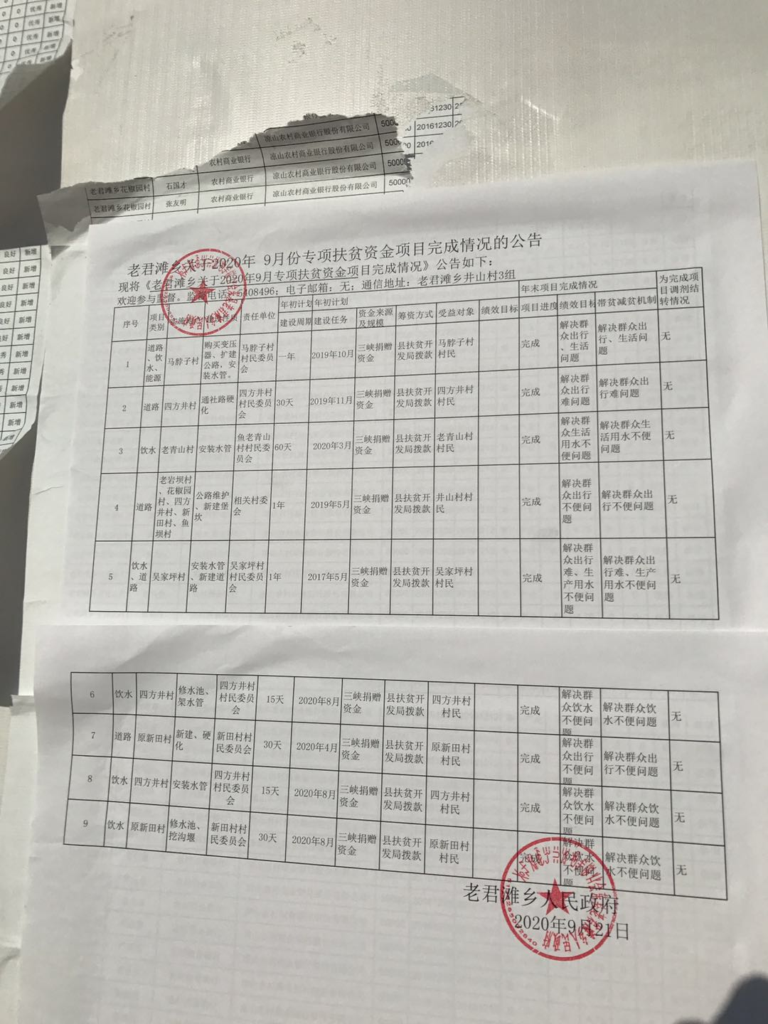 老君滩乡截止2020年第三季度扶贫项目完工公示