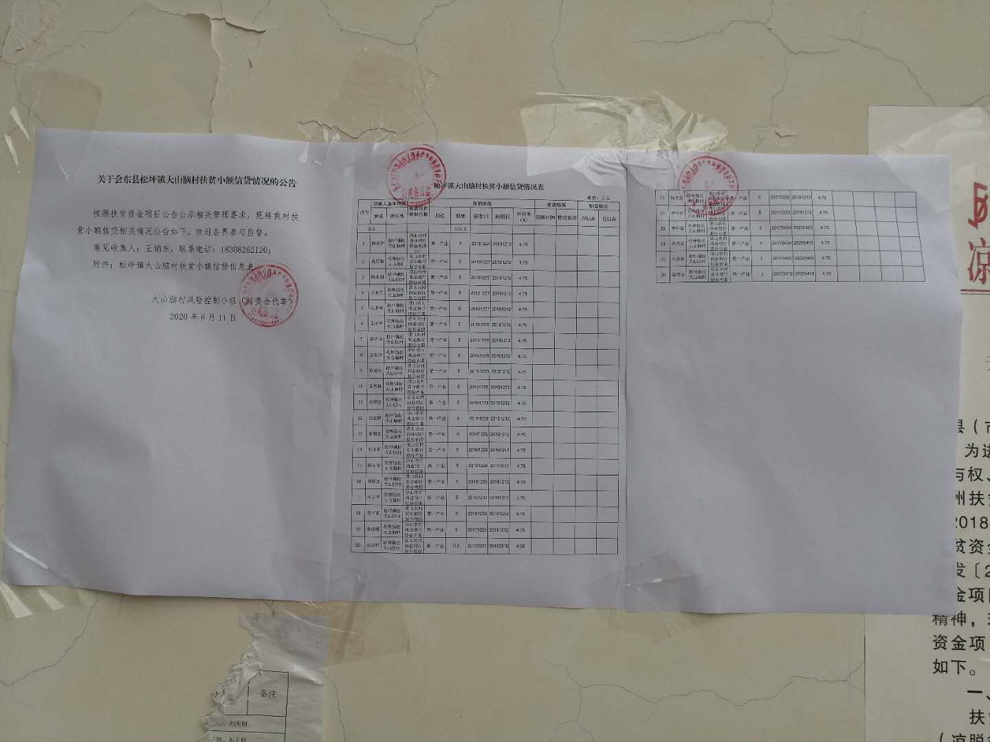 松坪镇大山脑村关于扶贫小额信贷情况的公告
