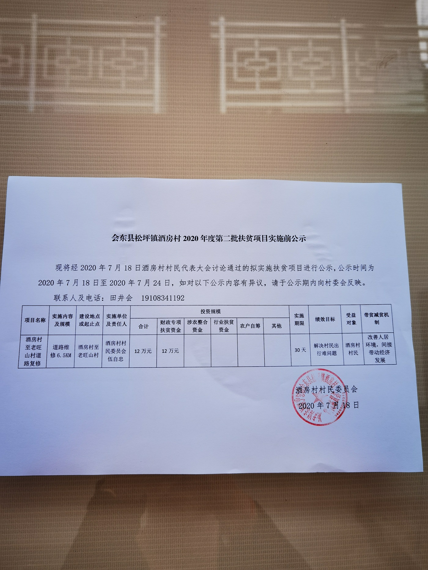 酒房村至老旺山村道路复修项目实施前公示