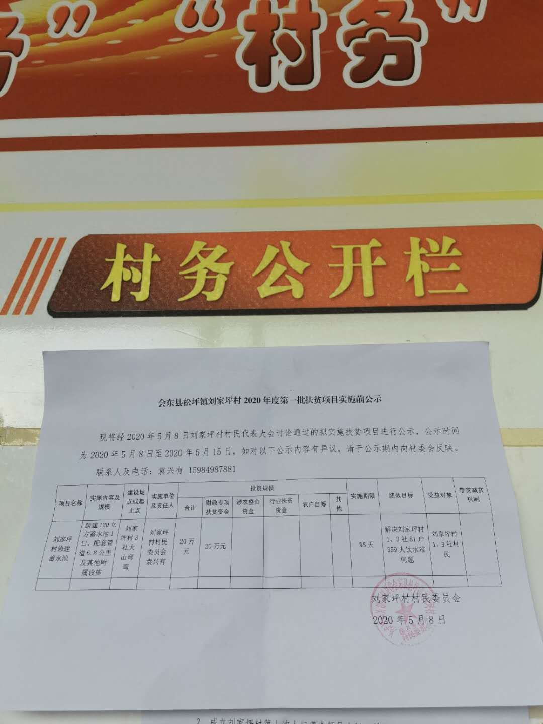 会东县松坪镇刘家坪村2020年度第一批扶贫项目实施前公示