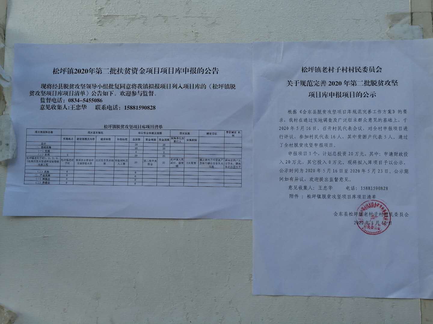 松坪镇老村子村村民委员会关于规范完善2020年第二批脱贫攻坚项目库申报的公示