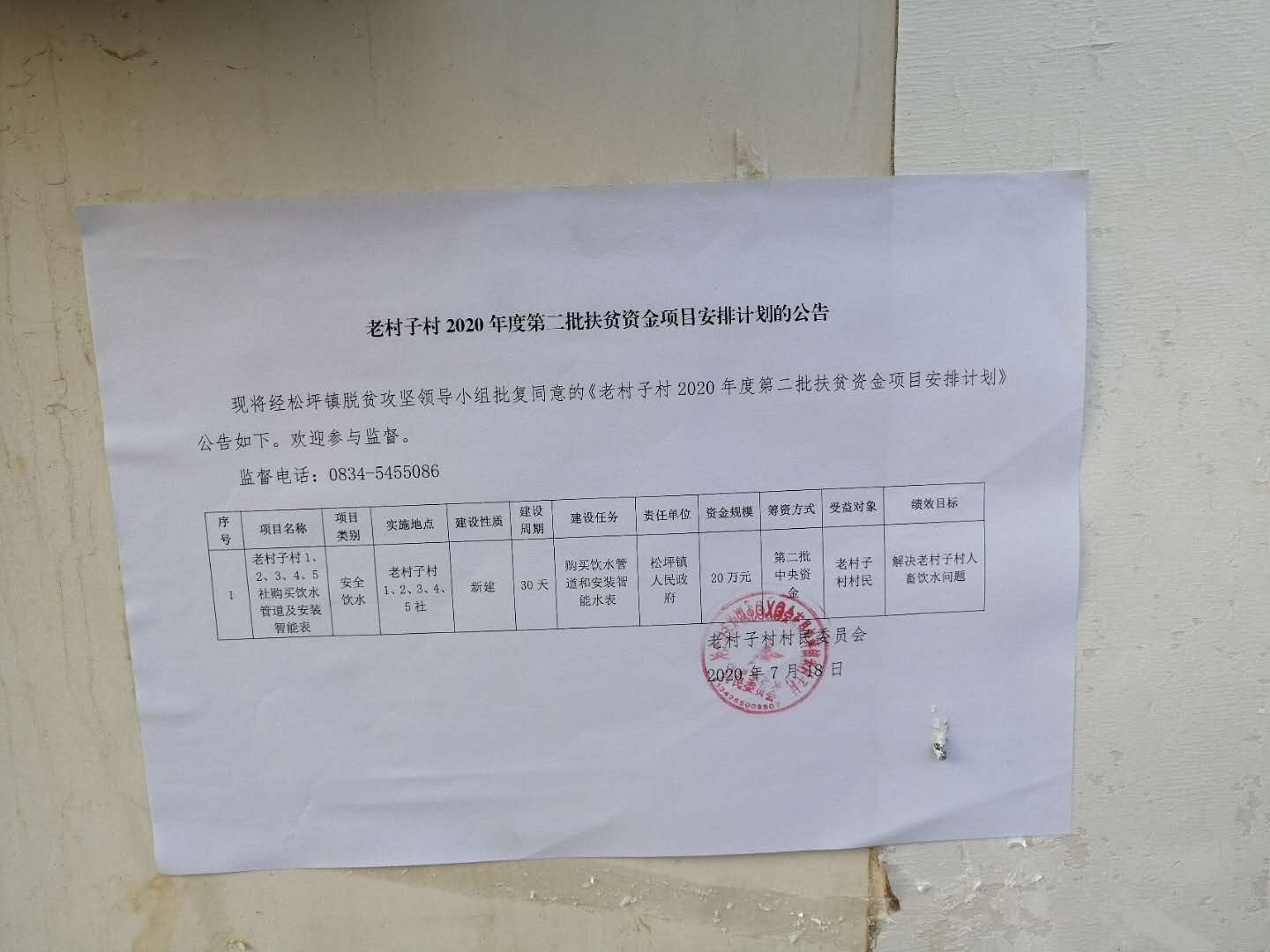 松坪镇老村子村2020年度第二批扶贫项目安排计划的公告