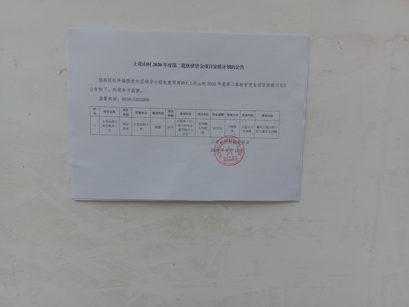 松坪镇上花山村2020年度第二批扶贫项目资金安排计划的公告