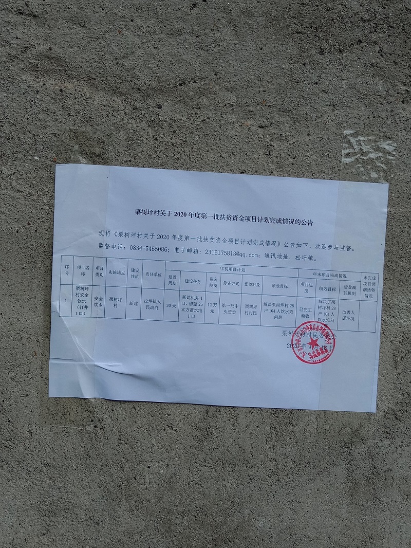栗树坪村2020年度第一批扶贫资金项目计划完成情况的公告