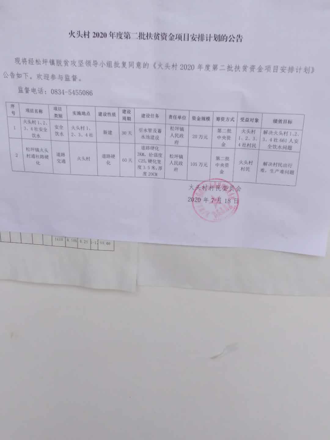 火头村关于2020年度第二批扶贫资金项目安排计划的公告