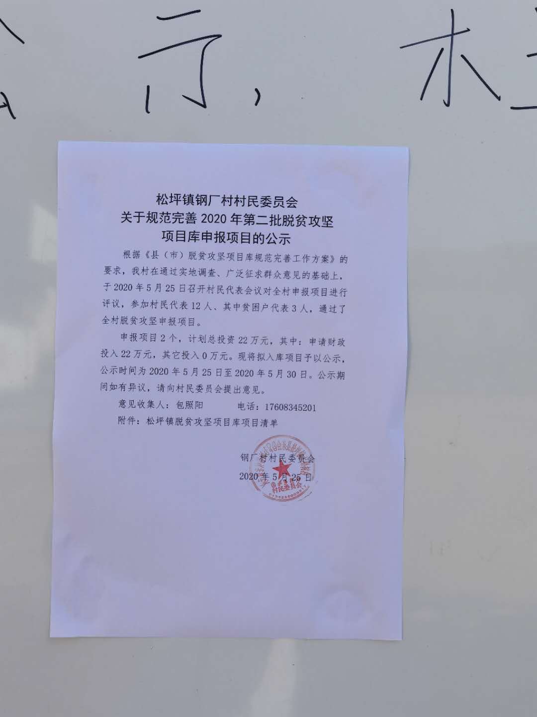 钢厂村关于规范完善2020年第二批脱贫攻坚项目库申报项目的公示