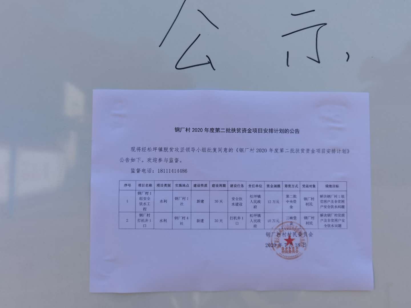 钢厂村关于2020年第二批扶贫资金项目安排计划的公告