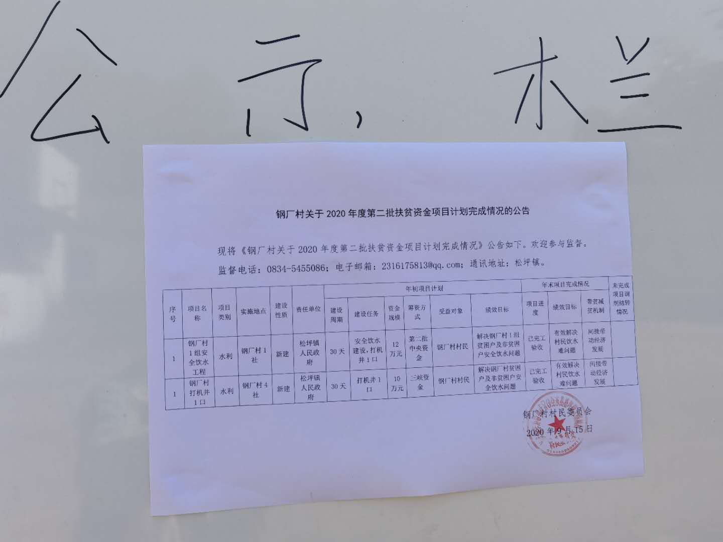 钢厂村关于2020年度第二批扶贫资金项目计划完成情况的公告