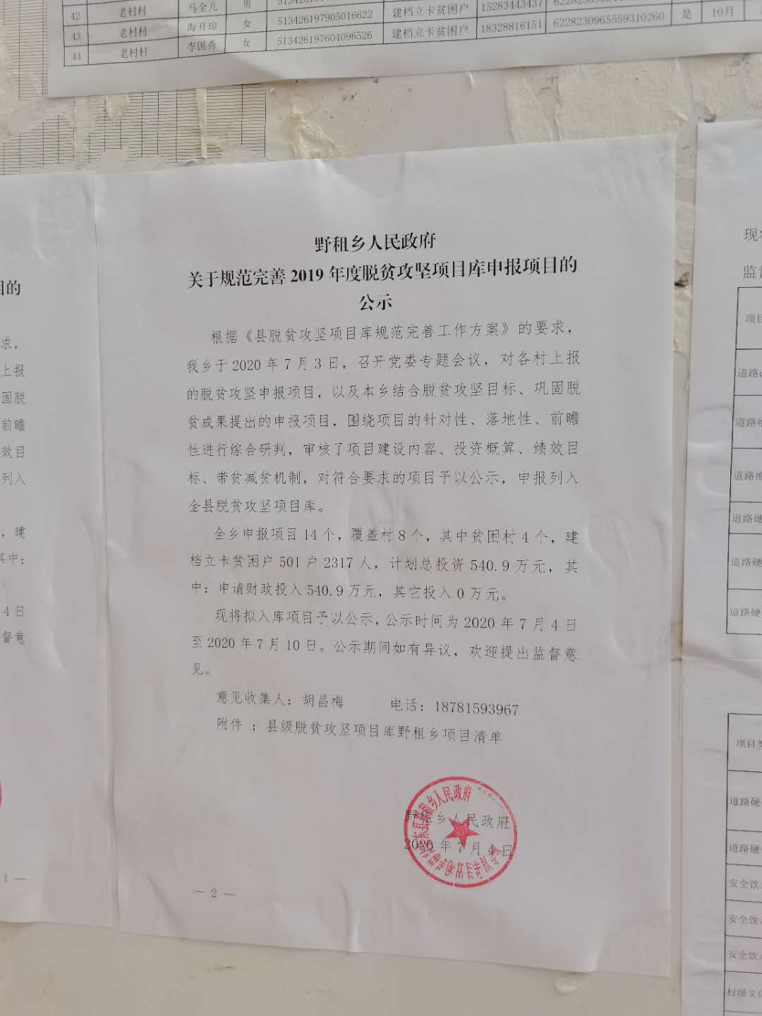 野租乡人民政府关于规范完善2019年度脱贫攻坚项目库申报项目的公示