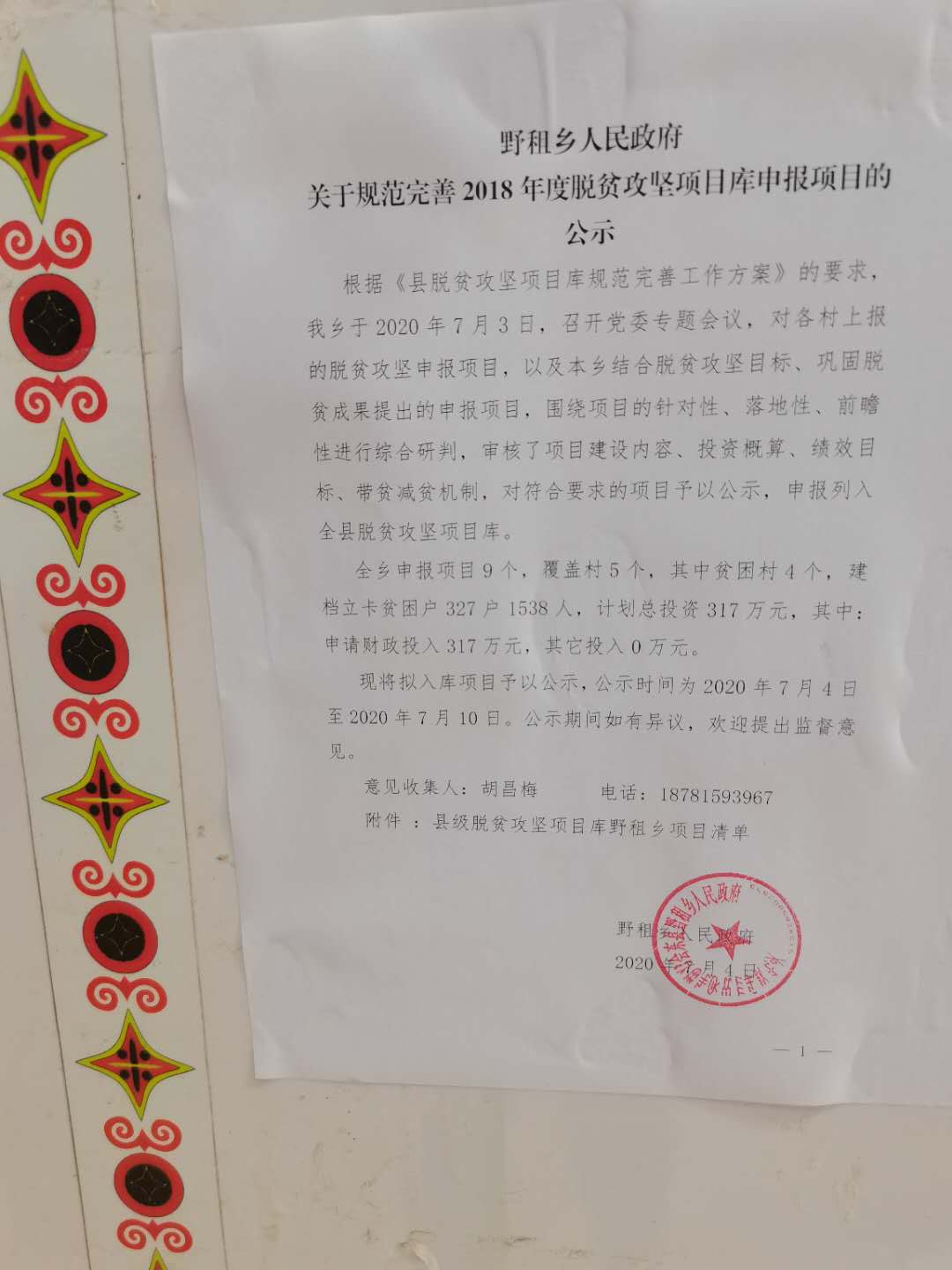 野租乡人民政府关于规范完善2018年度脱贫攻坚项目库申报项目的公示
