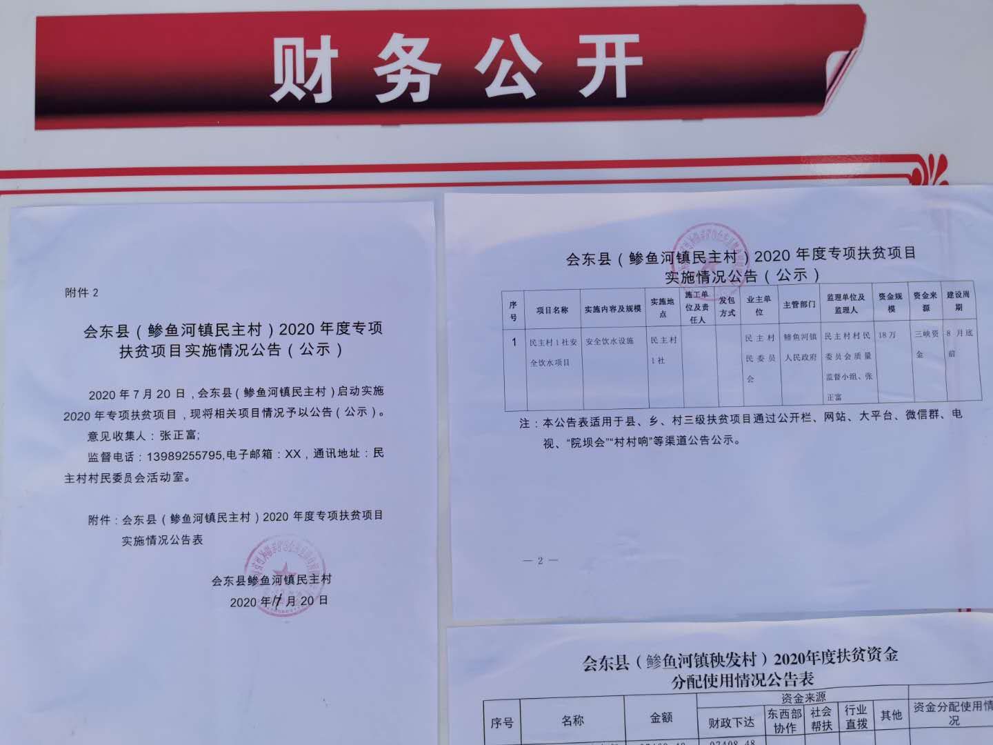 民主村2020年度专项扶贫项目实施情况公示