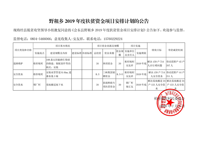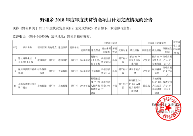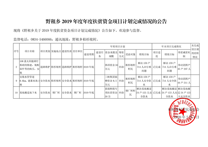 柏杉坡村2018—2019年度资金项目安排计划和项目计划完成情况