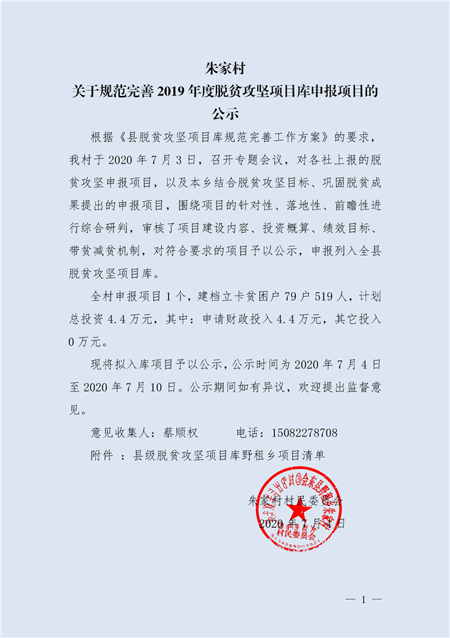 朱家村村关于规范完善2019年度脱贫攻坚项目库申报项目的公示