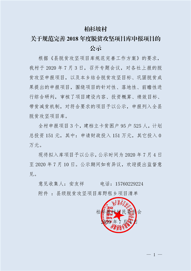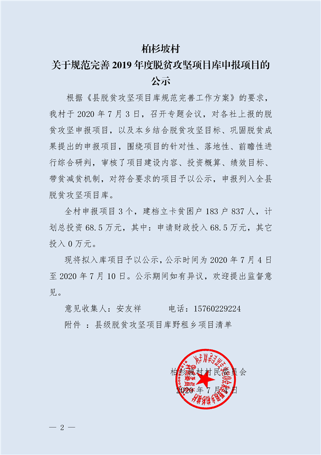 柏杉坡村关于规范完善2018、2019年度脱贫攻坚项目库申报项目的公示