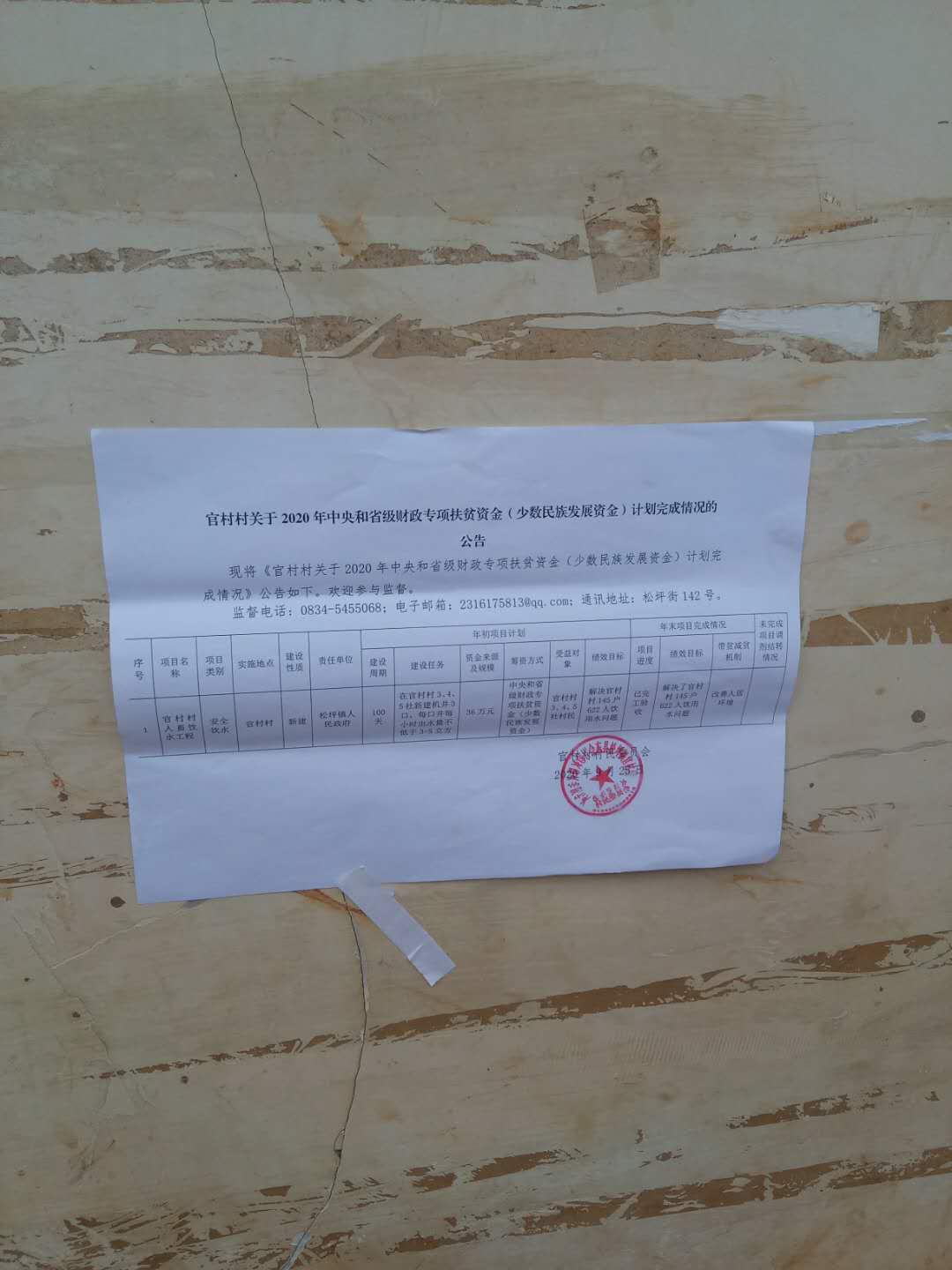 官村村关于2020年中央和省级财政专项扶贫资金(少数民族发展资金)计划王城情况的公告