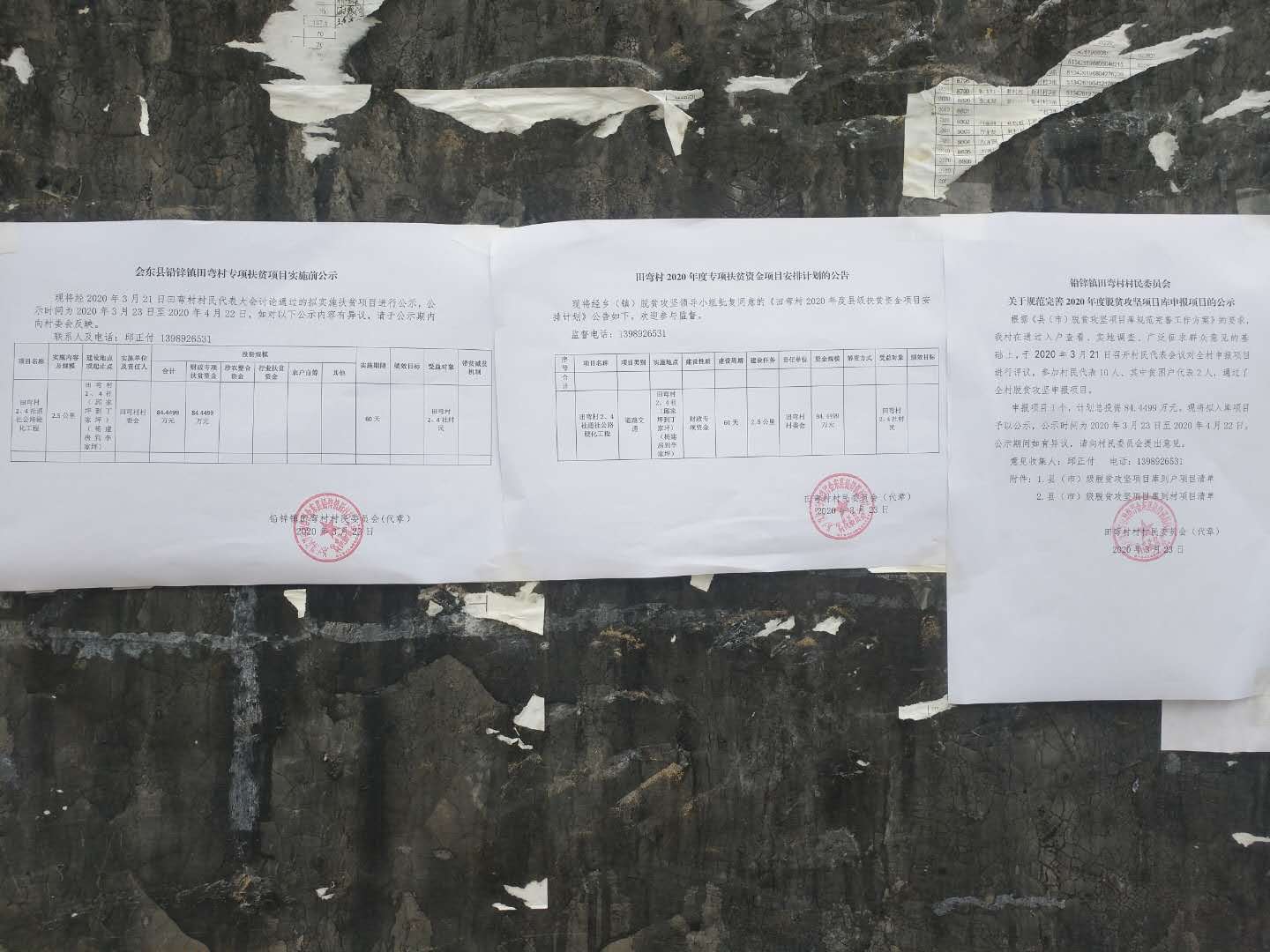田弯村2020年度专项扶贫资金项目公告公示(道路交通)