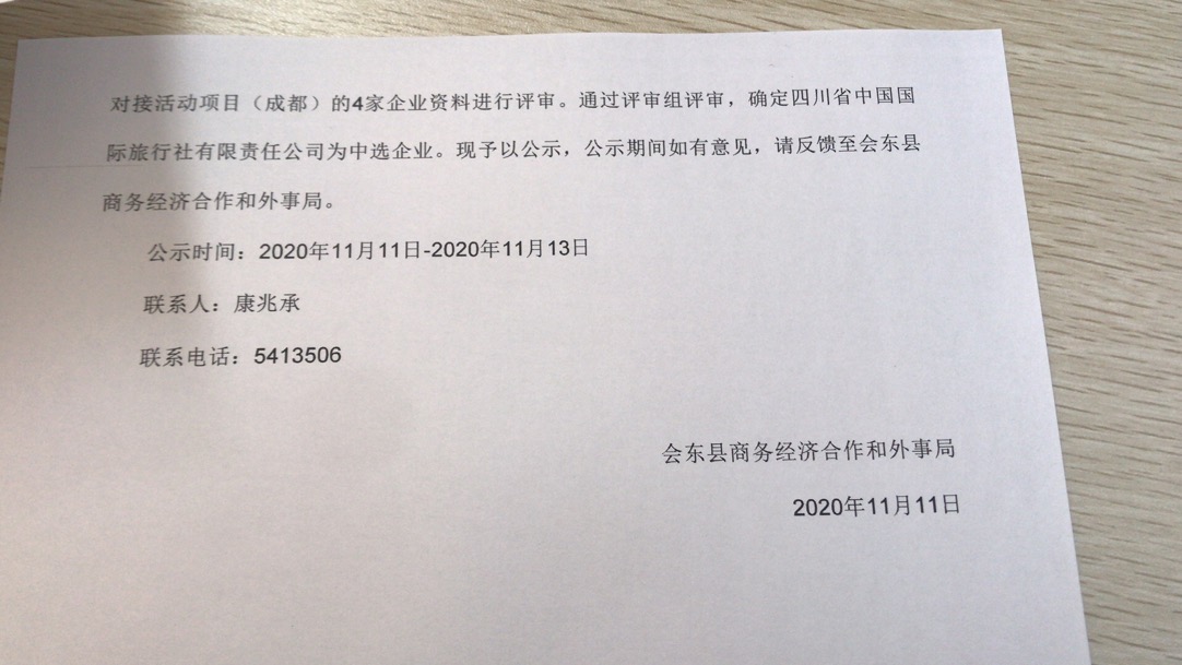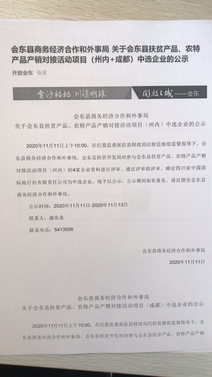 会东县商务经济合作和外事局 关于会东县扶贫产品、农特产品产销对接活动项目(州内+成都)中选企业的公示