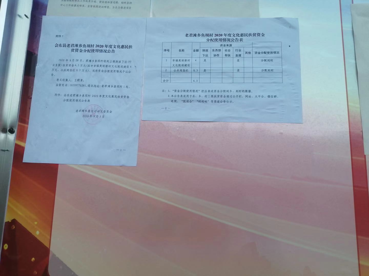 会东县老君滩乡鱼坝村2020年度文化惠民扶贫资金分配使用情况公告