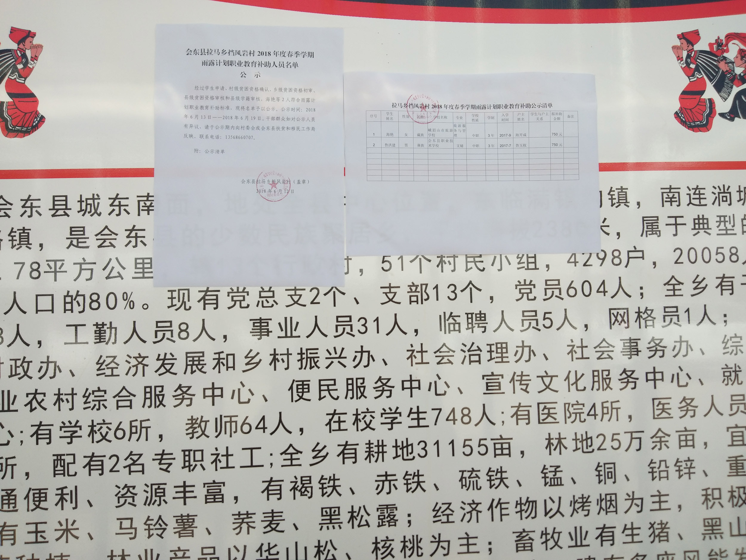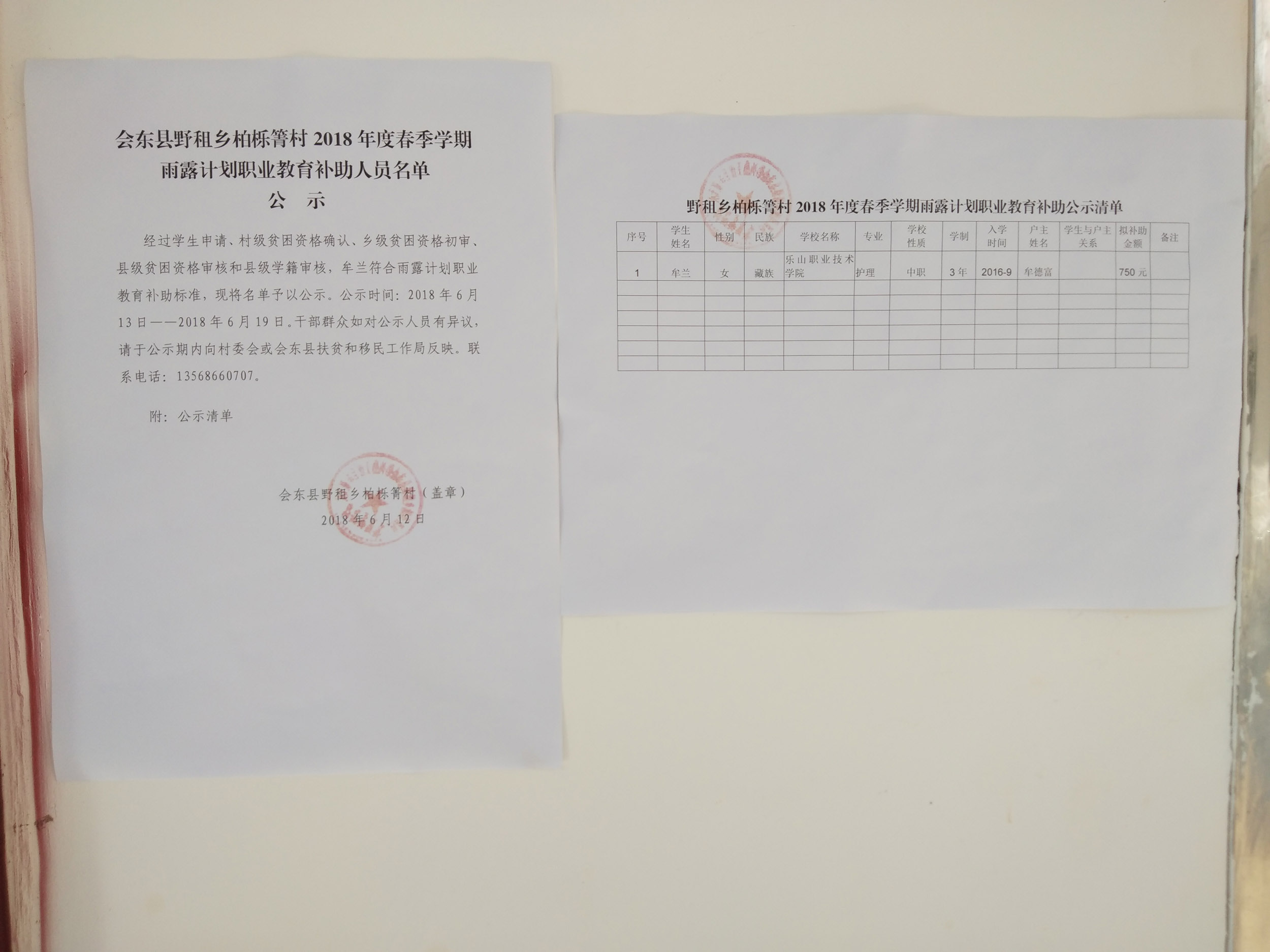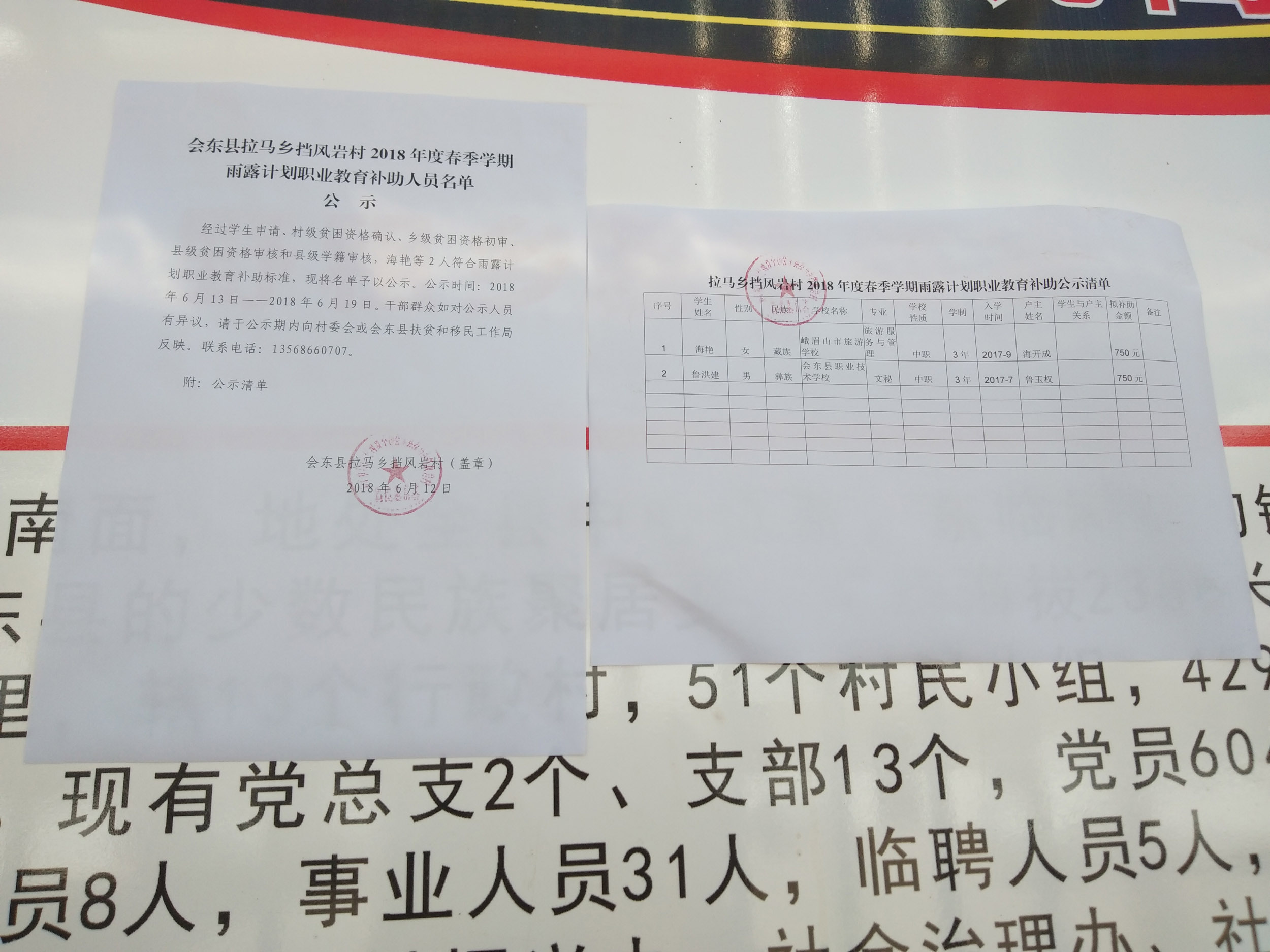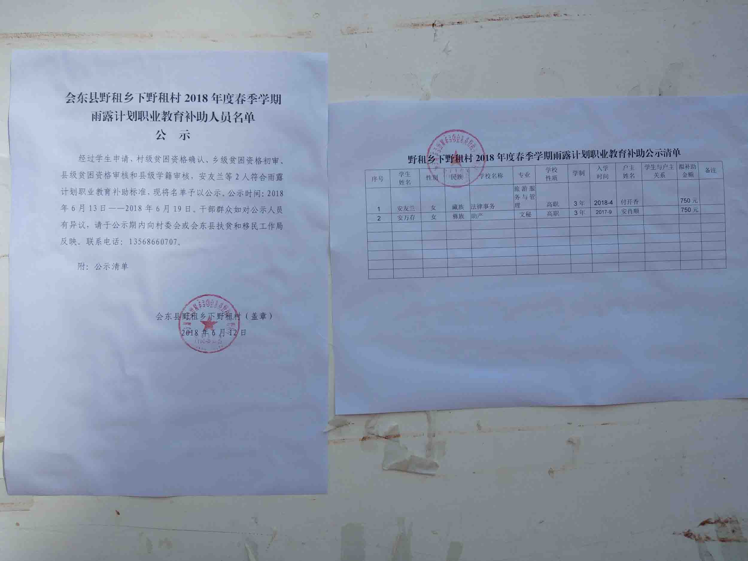 2018年挡风岩、柏栎箐、下野租、老村村雨露计划公示