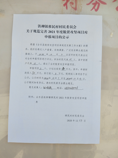 移民村2021年扶贫项目申报公示