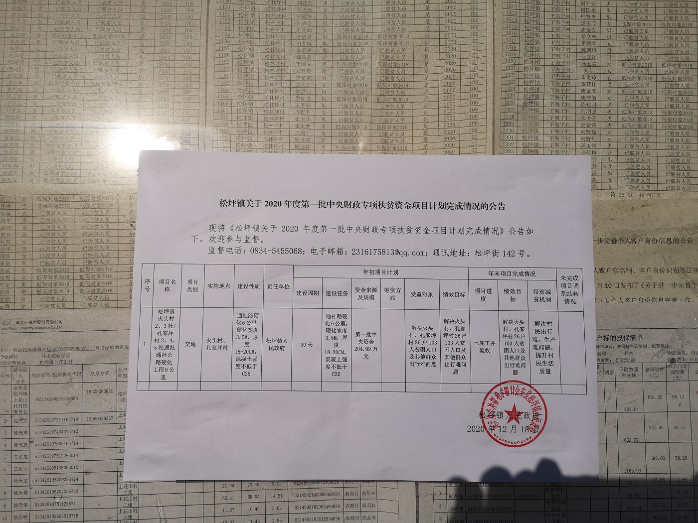 会东县松坪镇2020年第一批中央财政专项扶贫资金完成情况公告
