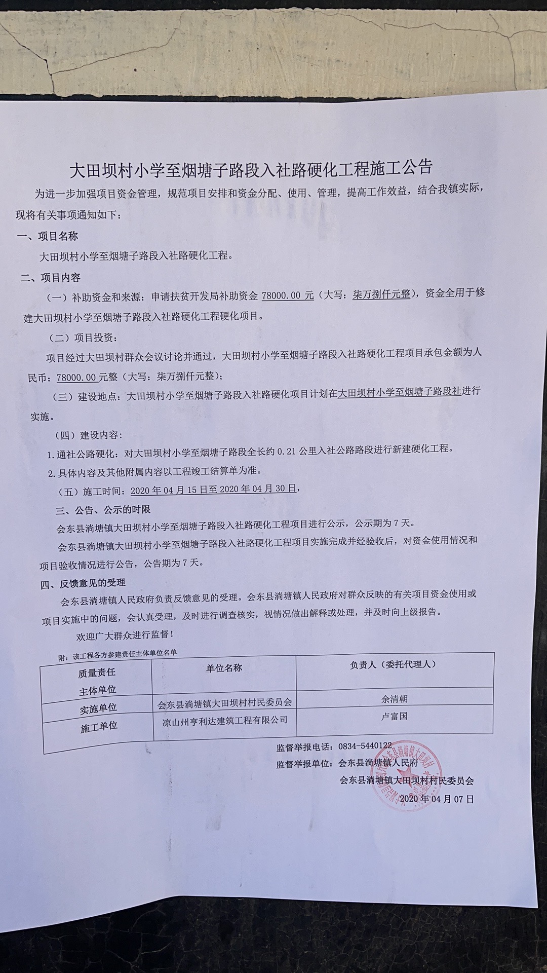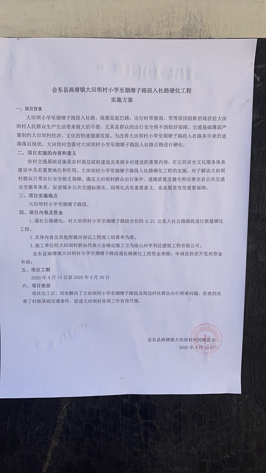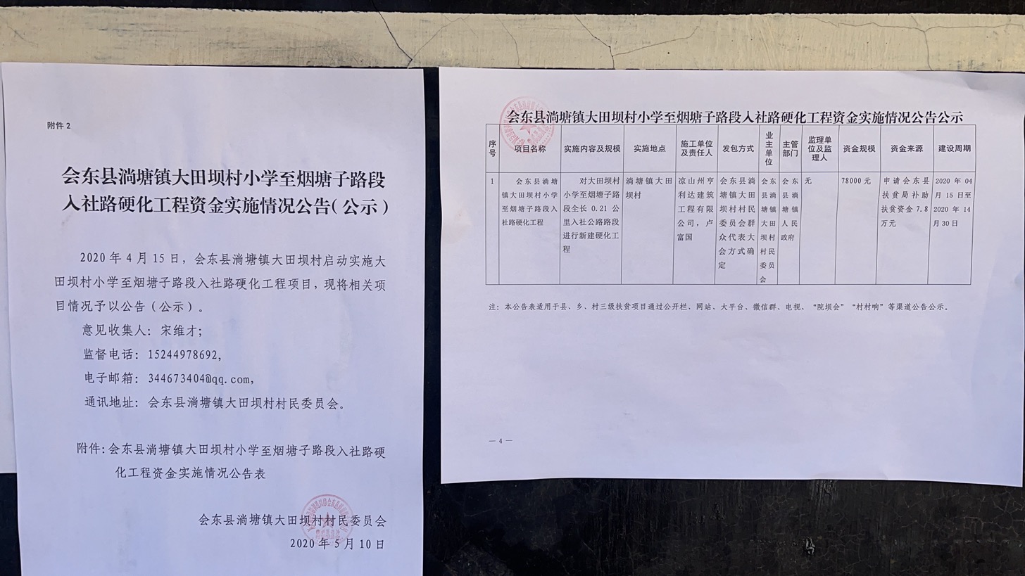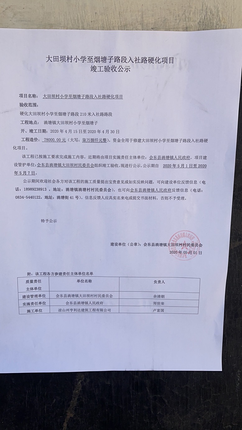 大田坝村小学至烟塘子路段入社路硬化工程