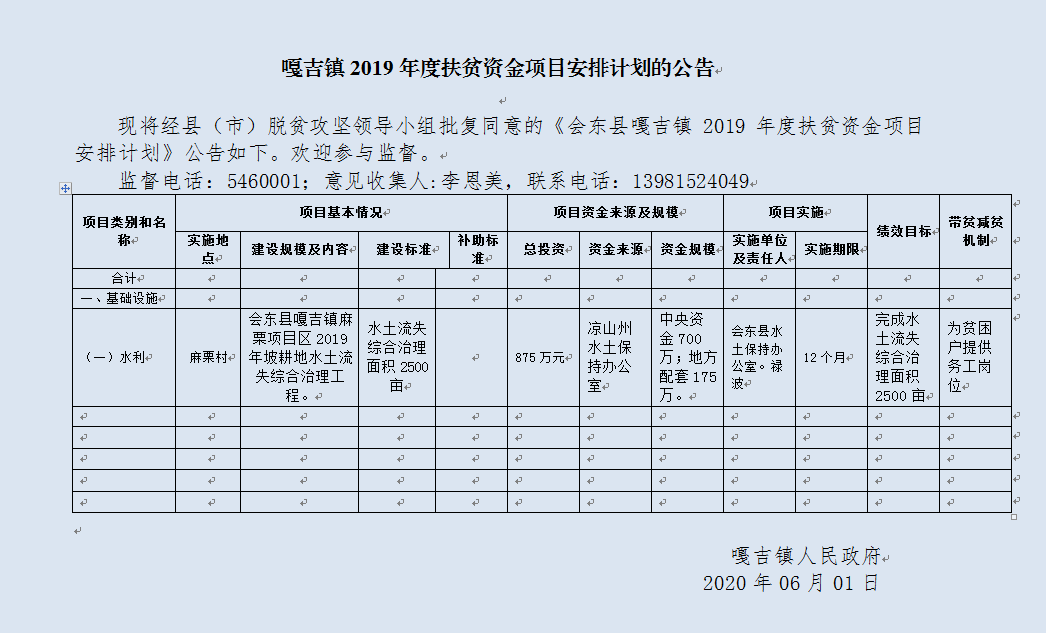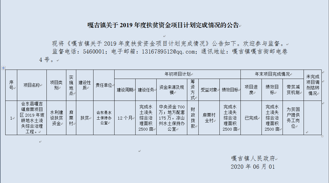 会东县嘎吉镇麻栗项目区2019年坡耕地水土流失综合治理工程