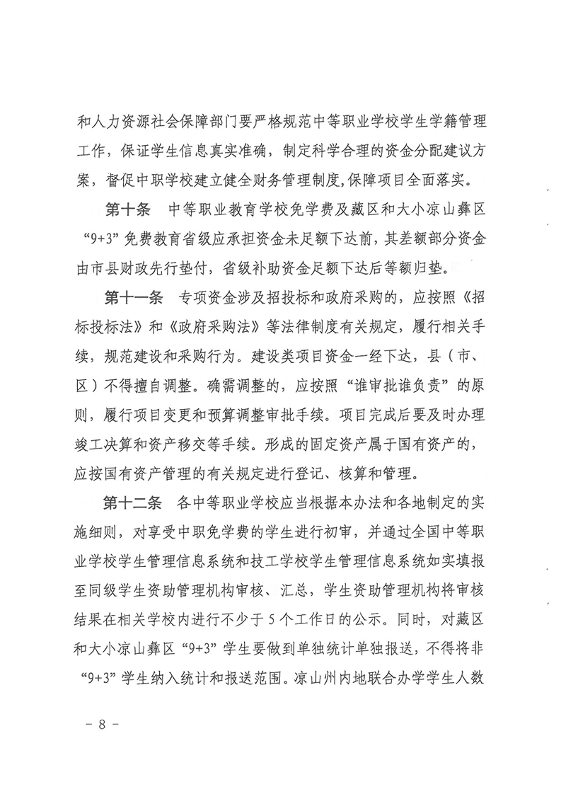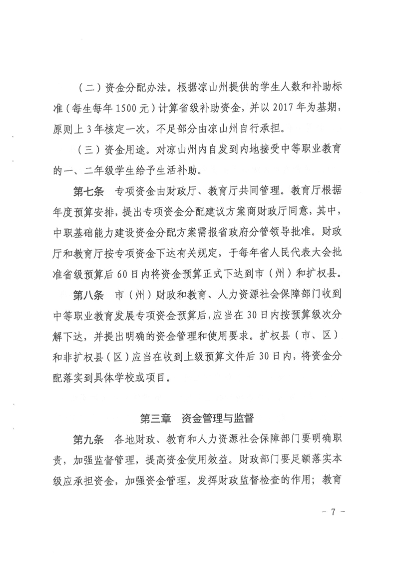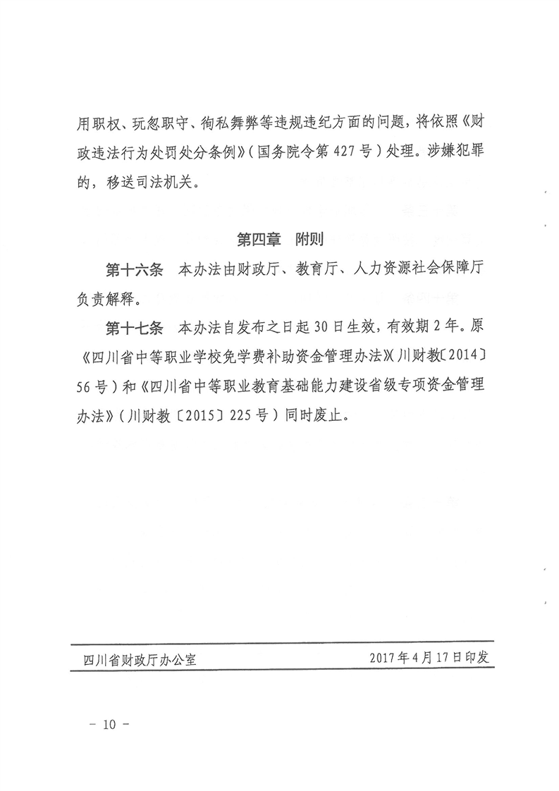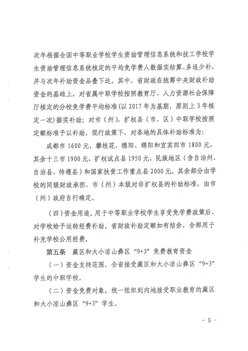 四川省财政厅 四川省教育厅 四川省人力资源和社会保障厅关于印发《四川省中等职业教育发展专项资金管理办法》的通知