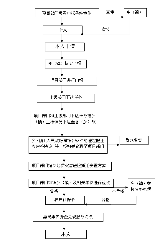 会东县地质灾害避险搬迁安置项目申报及资金兑付流程图