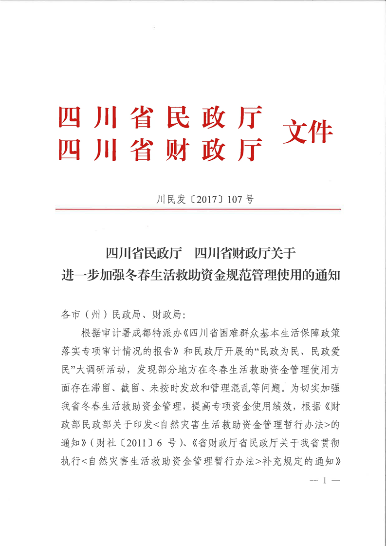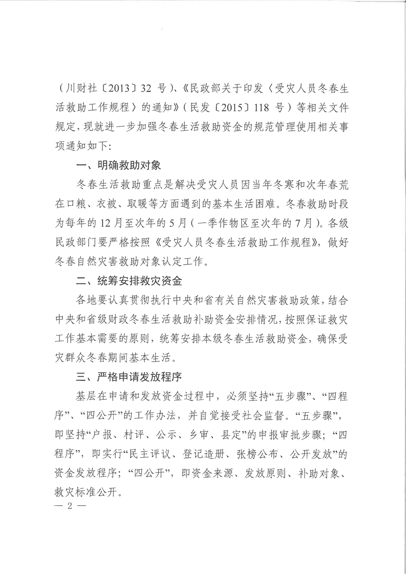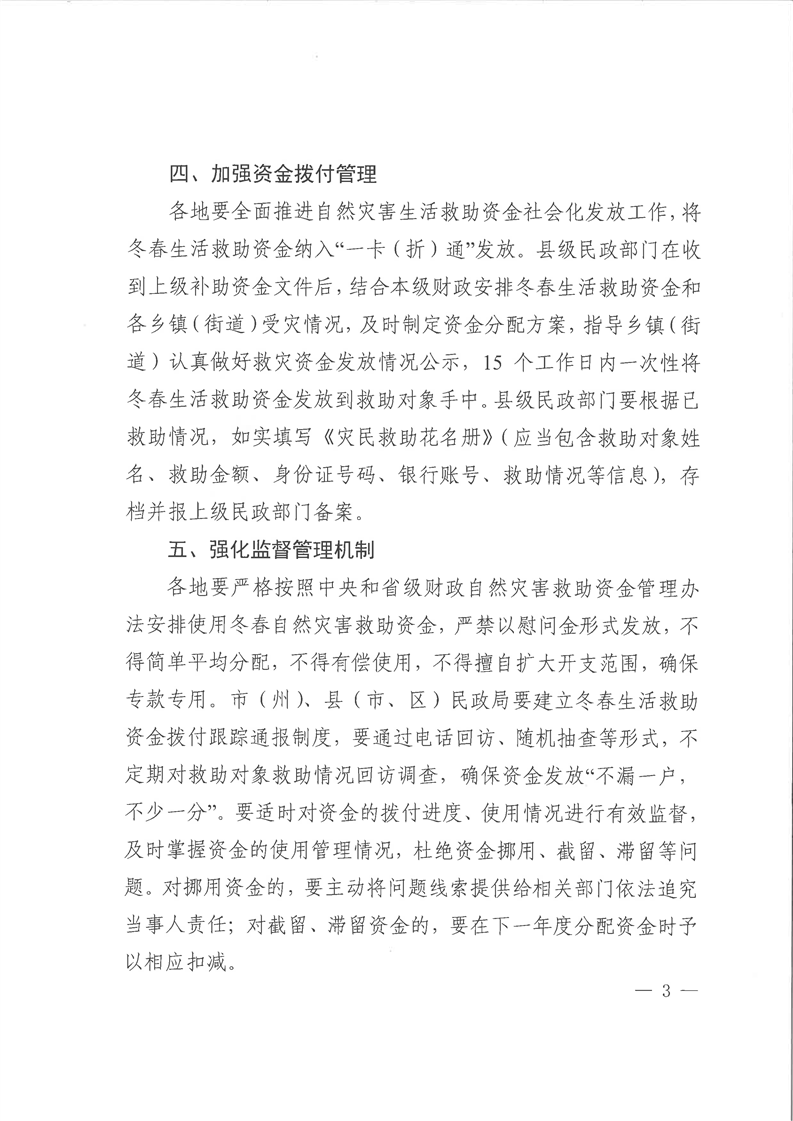 关于进一步加强冬春生活救助资金规范管理使用的通知