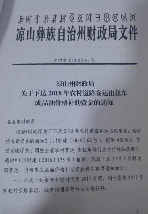 关于下达2018年农村道路客运出租车成品油价格补助资金的通知