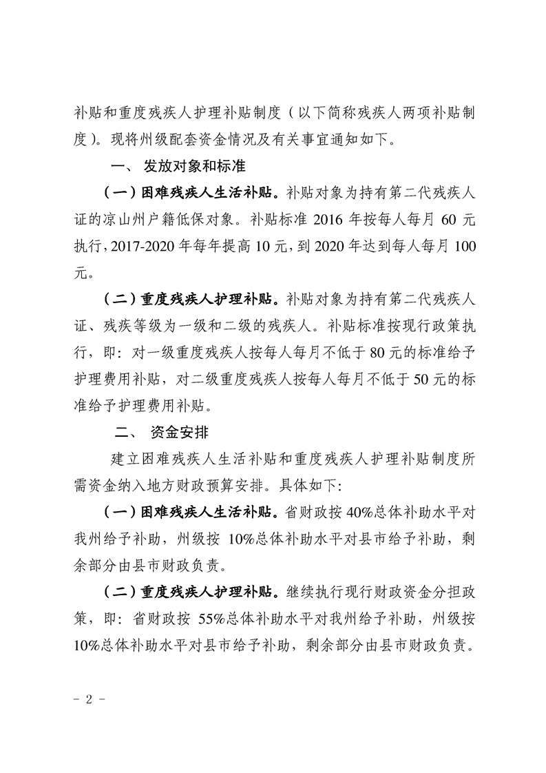 凉山州民政局 凉山州财政局 凉山州残疾人联合会关于建立困难残疾人生活补贴和重度残疾人护理补贴制度的通知