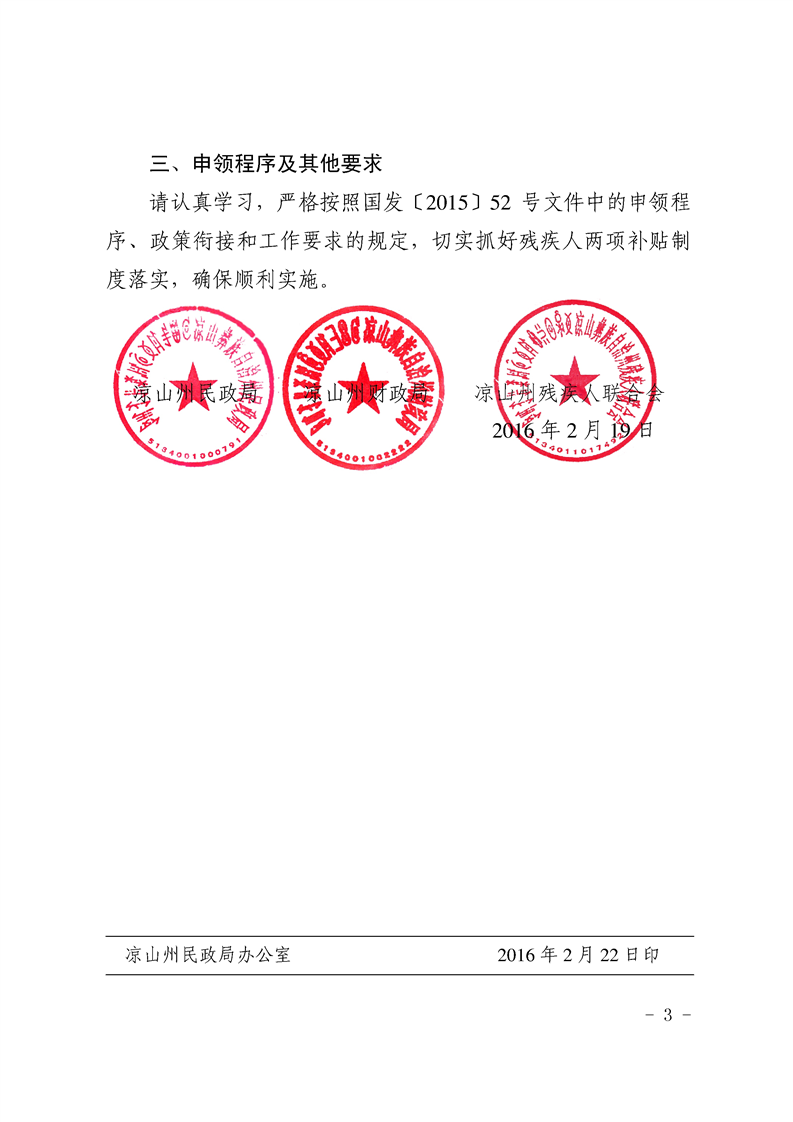 凉山州民政局 凉山州财政局 凉山州残疾人联合会