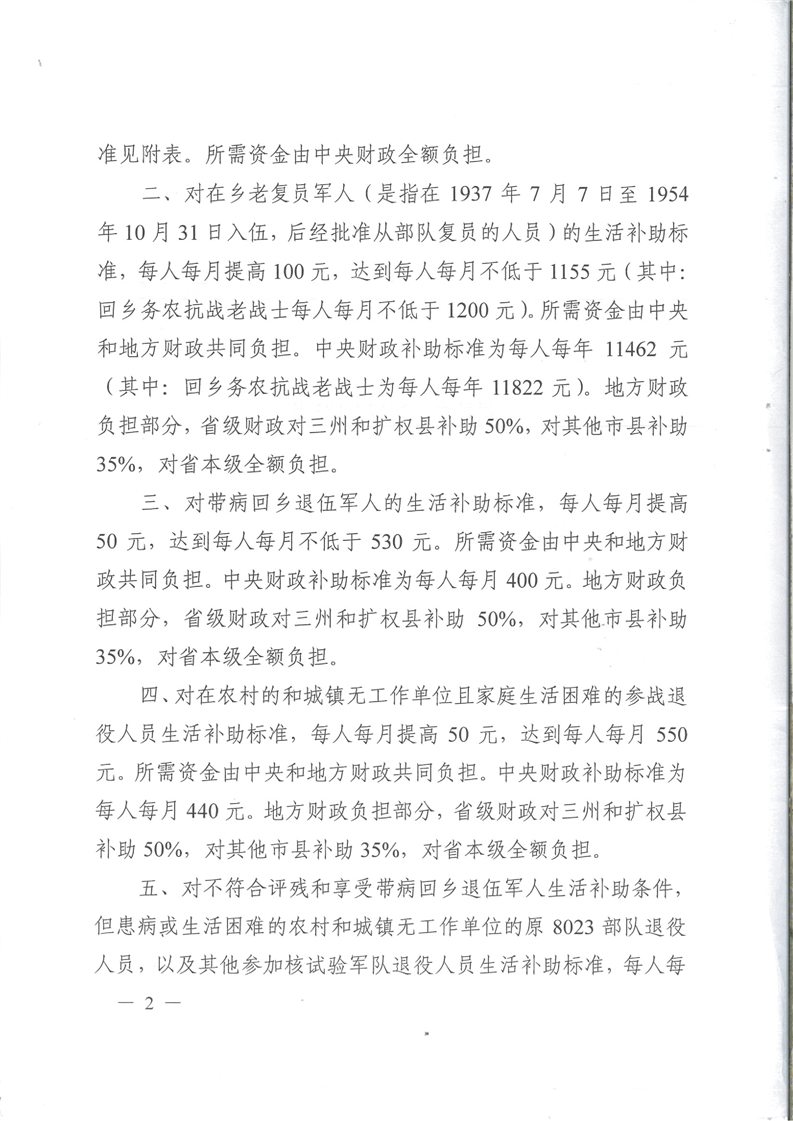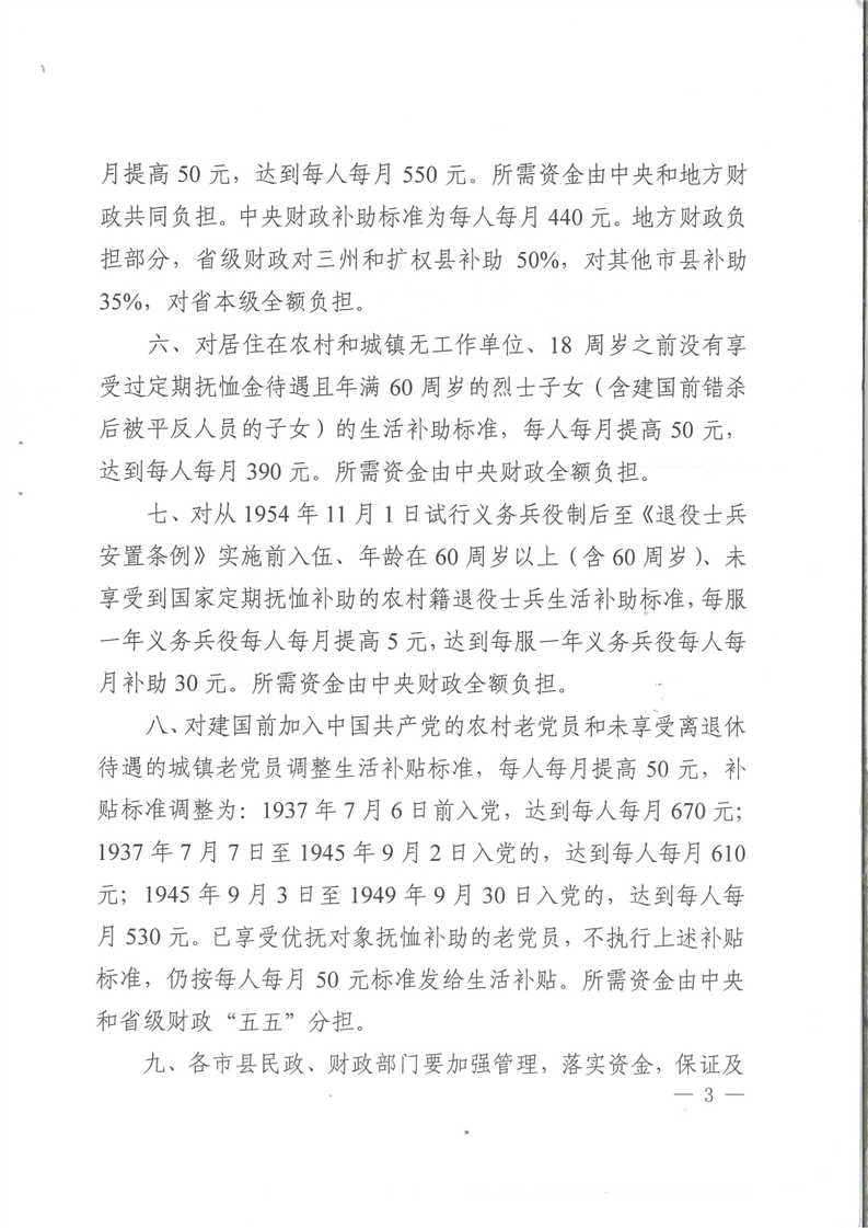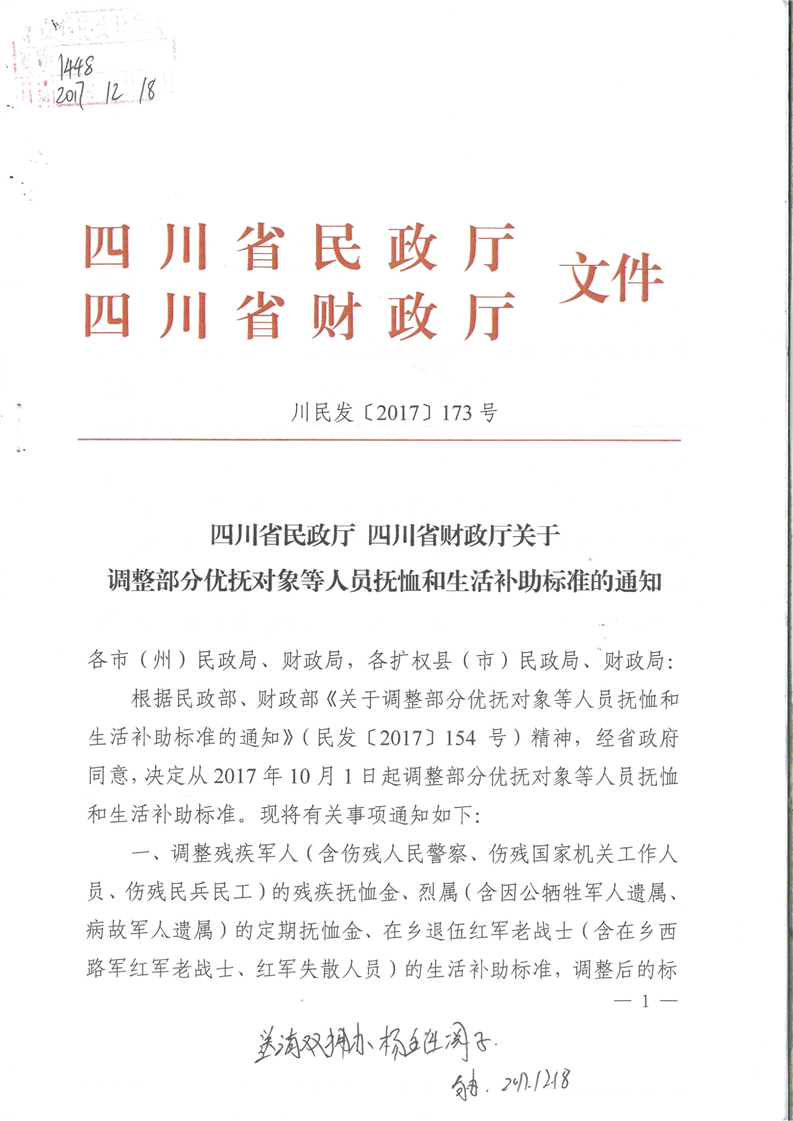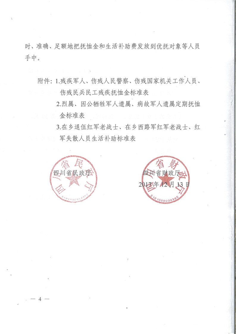 四川省民政厅 四川省财政厅关于调整部分优抚对象等人员优抚和生活补助标准的通知