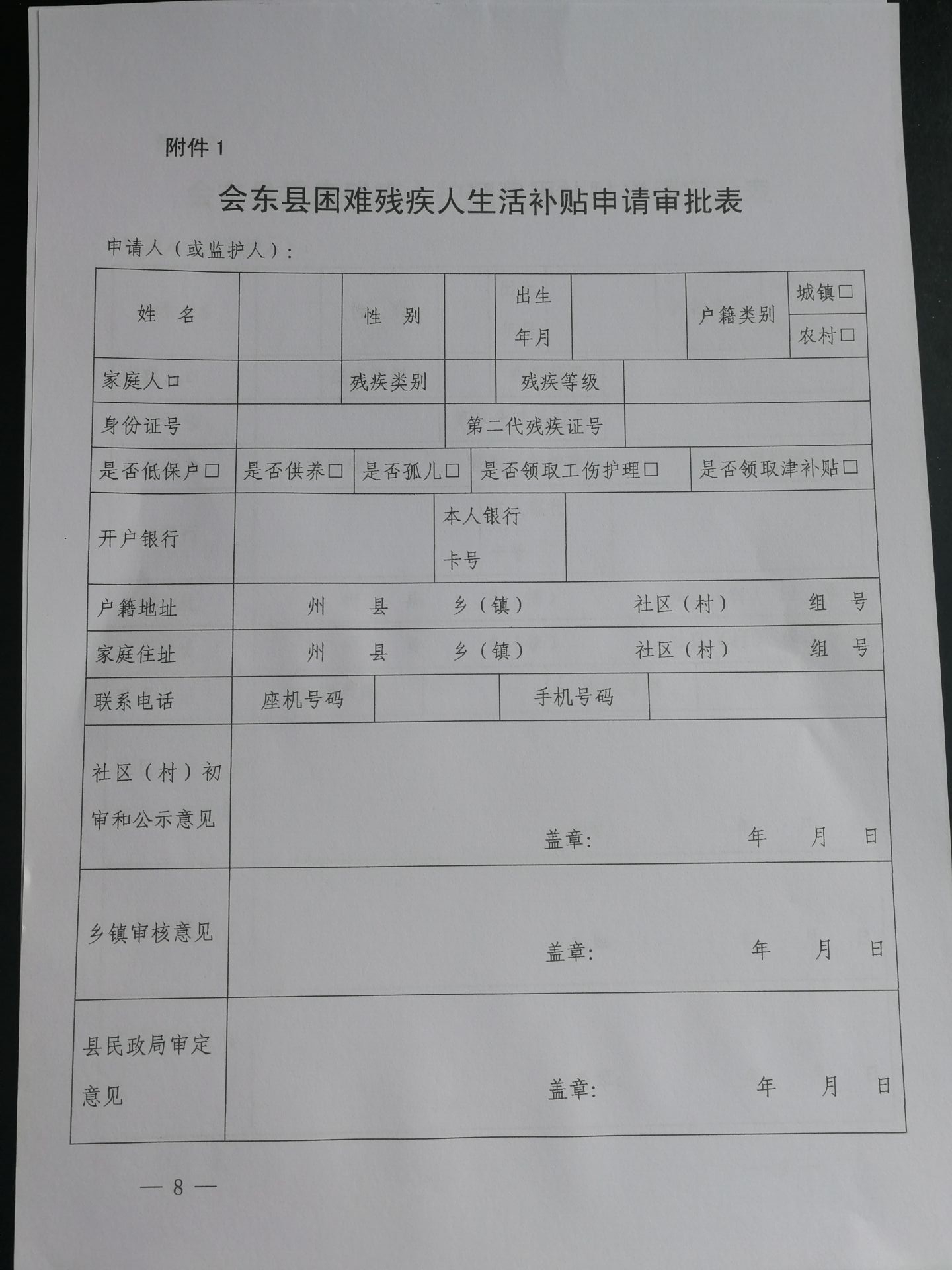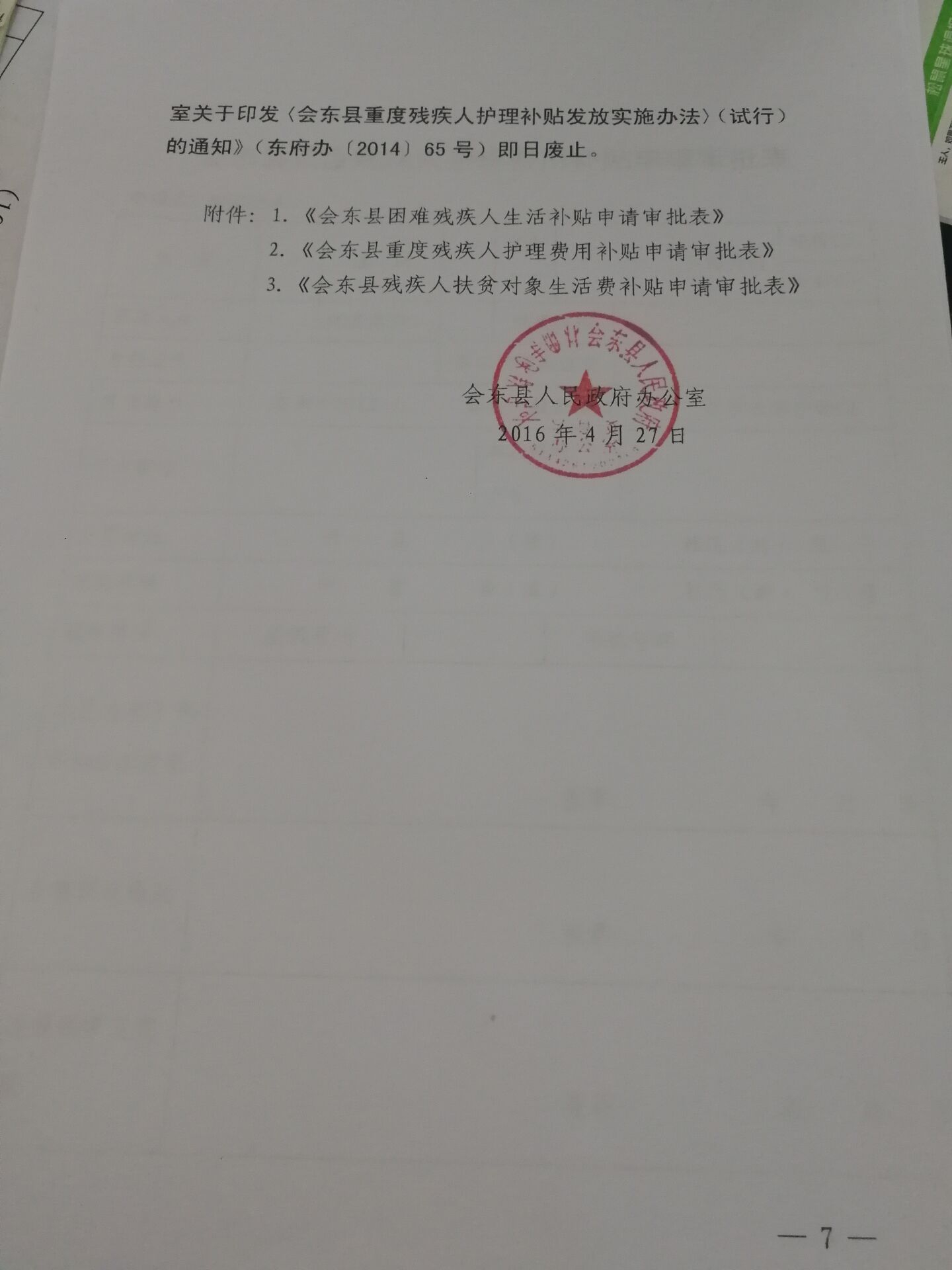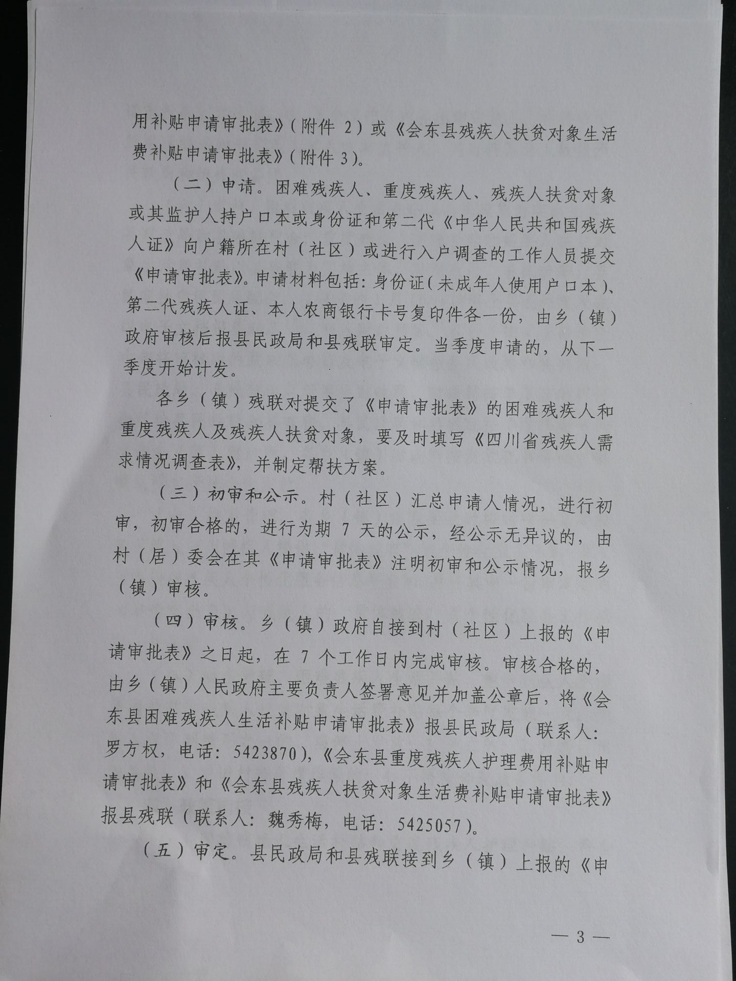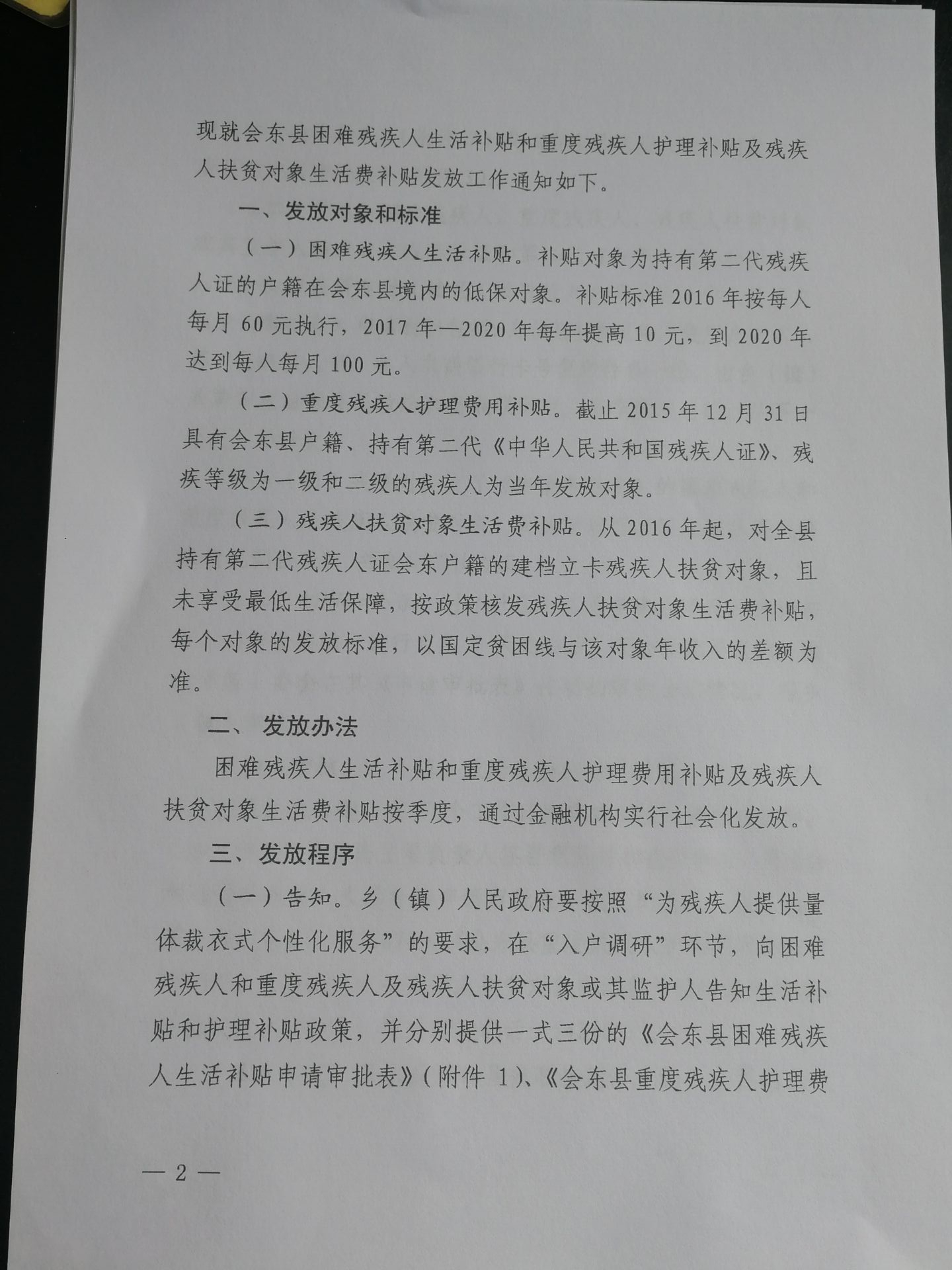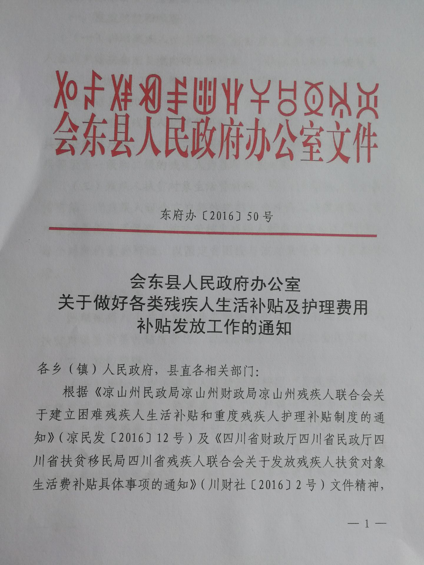会东县人民政府办公室关于做好各类残疾人生活补贴及护理费用补贴发放工作的通知