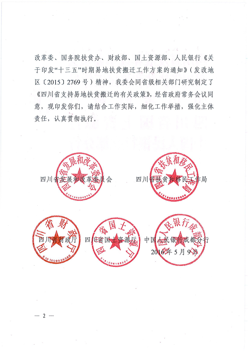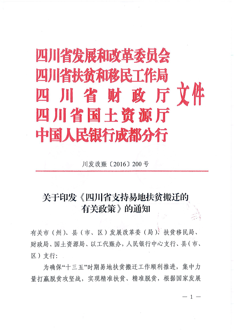 关于印发《四川省支持易地扶贫搬迁的有关政策》的通知