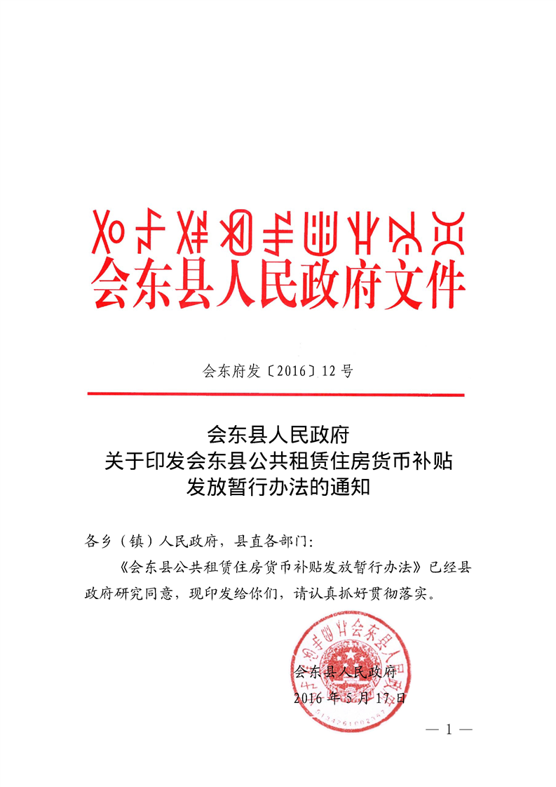 关于印发会东县公共租赁住房货币补贴发放暂行办法的通知